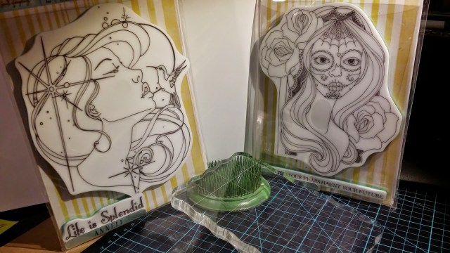 These are the very first Bloom Girl stamps I’ve purchased. I was actually shocked by the size of these stamps. Anneli measures 5 3/4″ x 7″ and Catrina measures approx 6 x 7″. So if your used to using the smaller stamps, a word to the wise, these are big, big stamps. As you may be able to tell from the picture, my largest clear stamp block measures 6 1/2″ x 4 1/2″ so the stamps are a bit bigger than my stamp block. I’ve seen a lot of very cool mixed media done with the Bloom Girl stamps. I’m going to play a bit with them and see what kind of trouble I can get into. Although, as my husband suggested, I could always stamp it with black ink and then scan the image and scale it down to put it on a card if I wanted. That is always an option. Never be afraid to try something new as I always say. Hopefully I’ll have something cool to show you with these stamps very soon. Stay tuned.