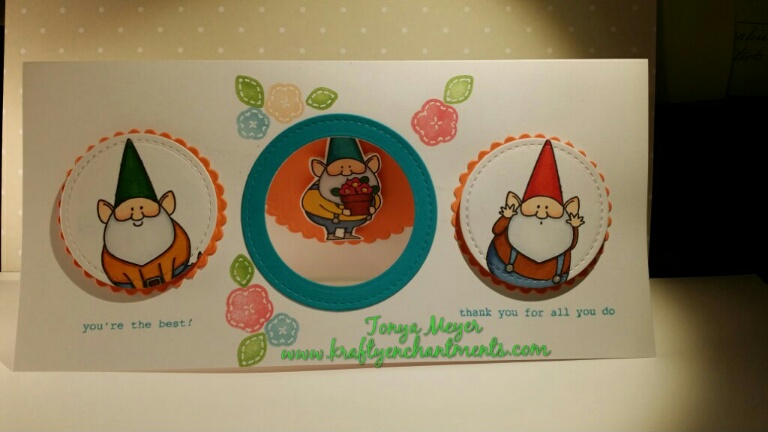 I’d created one additional card for my mom with the cute gnome stamps. I actually made this card first because I’d ordered the Poloroid die set as the gnome pictures were my original idea. However,the Poloroid dies hadn’t come as of midweek and I was worried I wouldn’t get a card done.