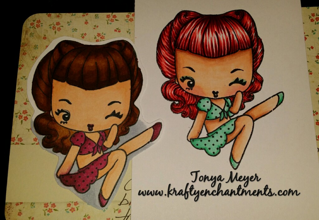 The before image on the left was colored in late 2014 and the after image on the right was colored Thursday, July 2nd, 2014. This stamp is from The Greeting Farm and is called Cheeky Rockabilly. It is from my own stamp collection.