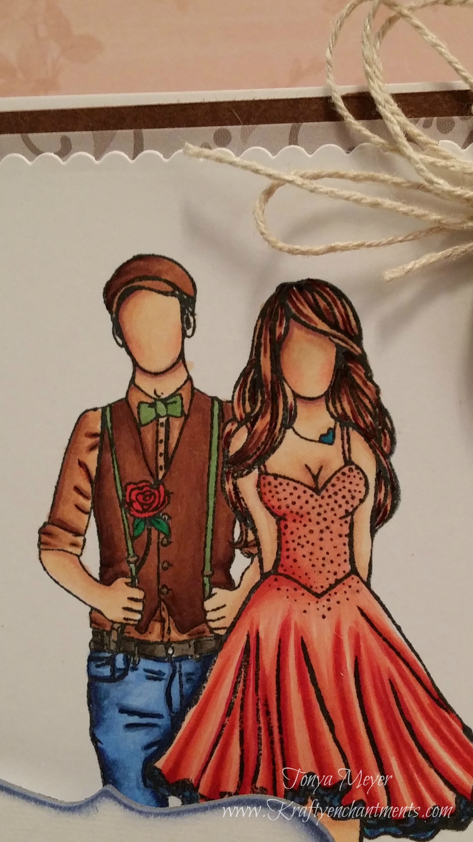 I stamped my image onto some Neenah Solar White cardstock using Memento Tuxedo Black ink and colored it with my Copics. I added a little clear Wink of Stella to the top of her dress to give it a bit of shimmer.