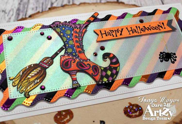 I hope you’ve enjoyed my fun little Halloween slimline card featuring the Witchy Boot Stamp set from Dare 2B Artzy.