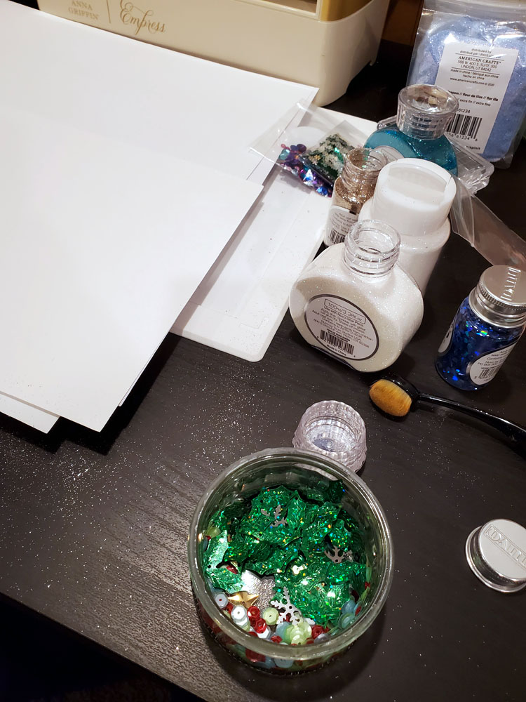 What if I told you that our Instagram HOP is full of holiday inspiration in 3-D Projects from all of our Dare 2B Artzy Design Team members? Could you use some creative ideas for holiday projects right about now? I know I could! Here’s my sneak peek photo below. You know if it involves glitter, it’s got to be good! Oh and I had glitter all over my clothes too…good times!