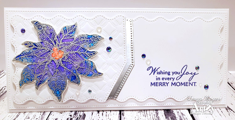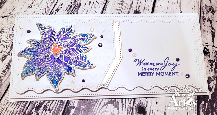 My card today features an older stamp that is one of my all time favorite Dare 2B Artzy holiday stamps. It is the Poinsettia Tangle stamp set. I just love this unique stamp set!