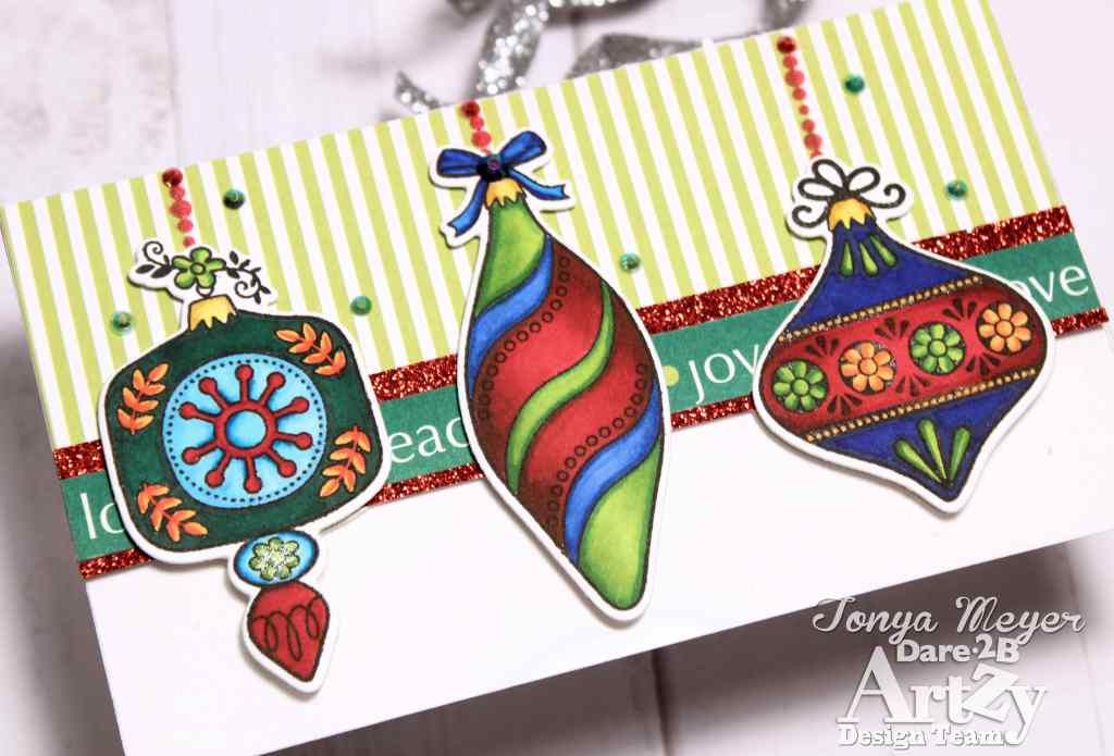 Hello Artzy friends! I’m popping in today with a card featuring the ornaments from the Dare 2B Artzy Deck the Halls stamp and die set. I know for some it’s a bit early to be jumping into Christmas cards, but I’m trying to get a jump start on them so I’m not scrambling for cards at the last minute like I typically do.