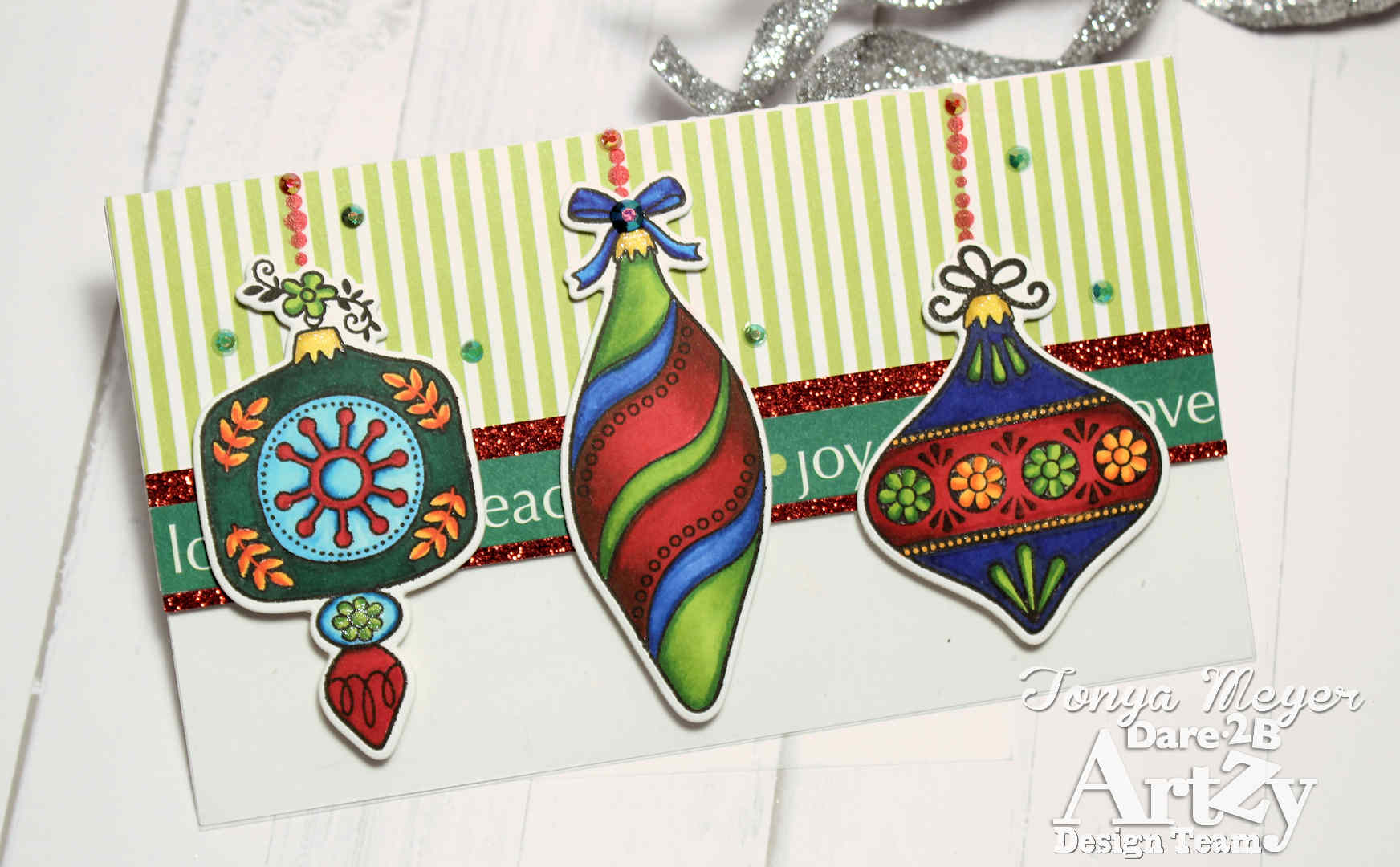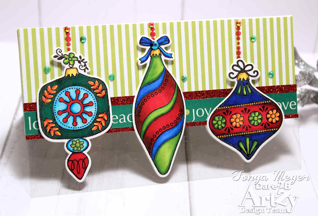 Hello Artzy friends! I’m popping in today with a card featuring the ornaments from the Dare 2B Artzy Deck the Halls stamp and die set. I know for some it’s a bit early to be jumping into Christmas cards, but I’m trying to get a jump start on them so I’m not scrambling for cards at the last minute like I typically do.