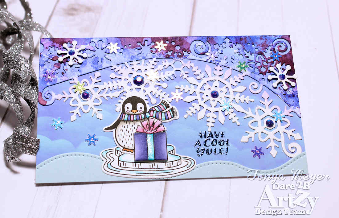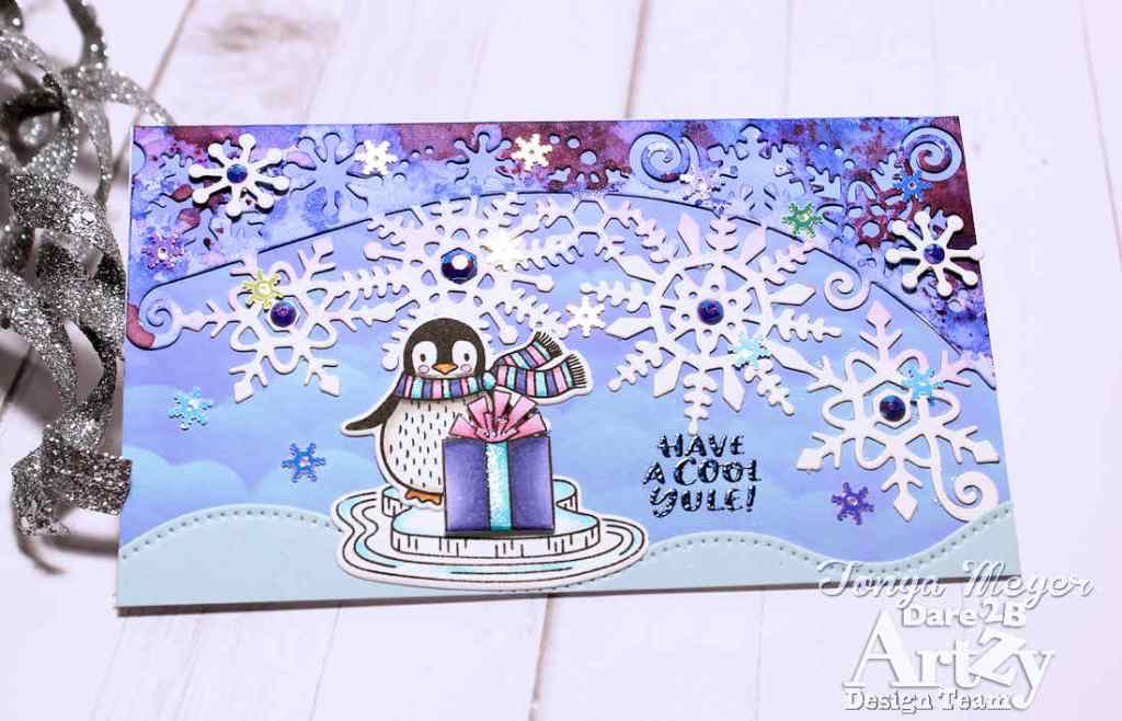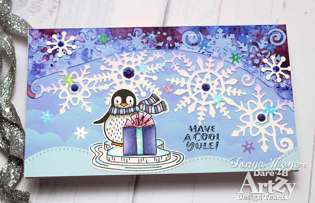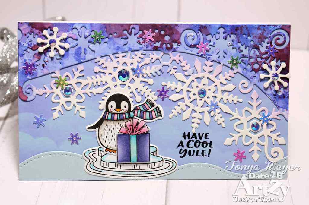 Hello Artzy friends! I’m back today with a chilly winter scene featuring Penguin Plunge stamp set to create a unique holiday card.