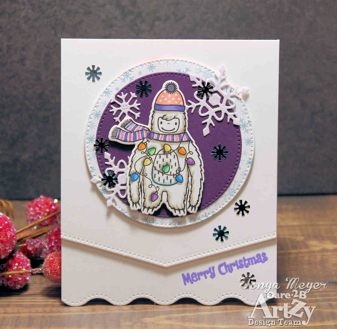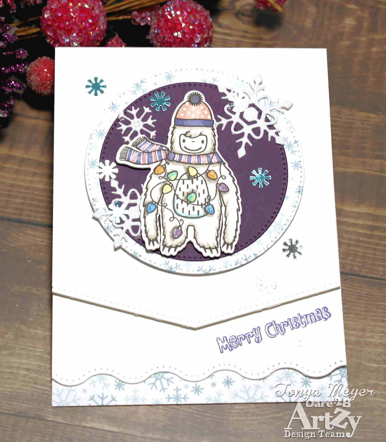 For my card today, I stamped the adorable Yeti all tangled up in Christmas lights with some Dare 2B Artzy Totally Black ink. This Yeti is from the Yeti 4 Winter stamp set and features lots of fun Yeti’s and some additional stamps to create the perfect winter scene.