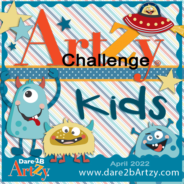 Hello crafty friends! Welcome back to my blog today! I was just sitting here today thinking that I cannot believe that it’s April already. Weren’t we just celebrating the holidays? I don’t know where the first 3 months of this year have gone? I do know a few things I’m excited for right now: Spring, warmer weather and the new Dare 2B Artzy monthly challenge. This months challenge theme is Kids!