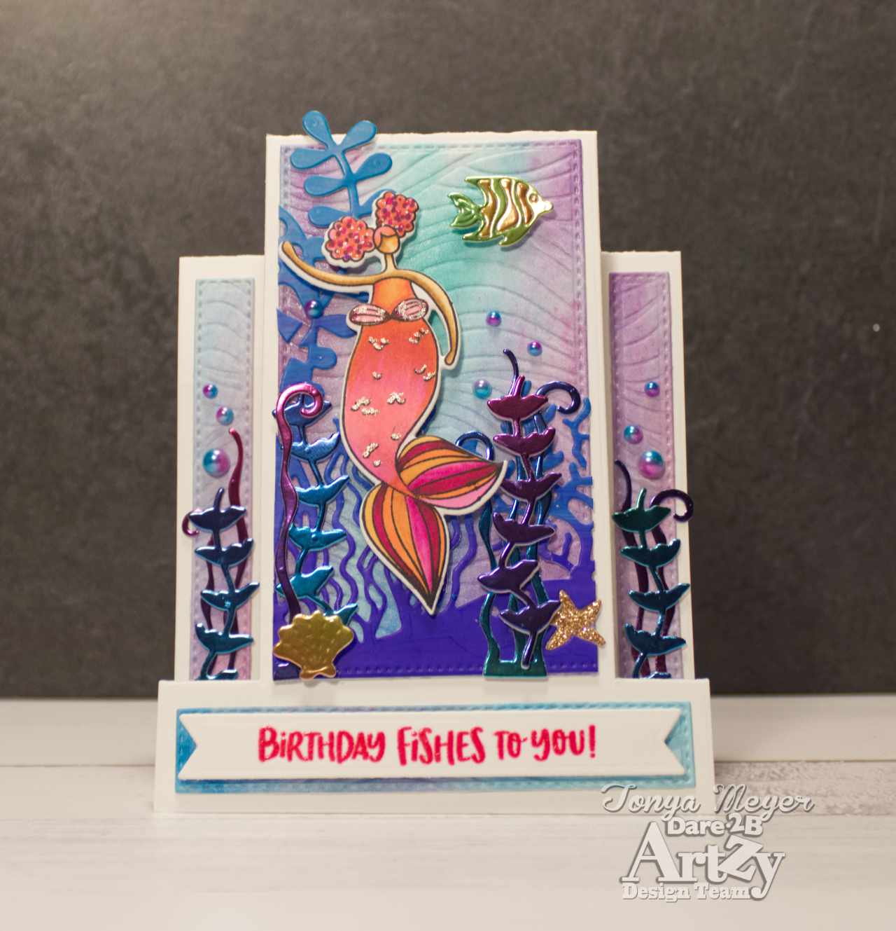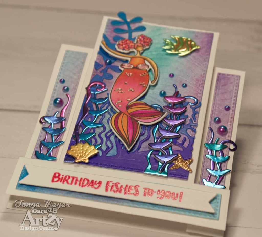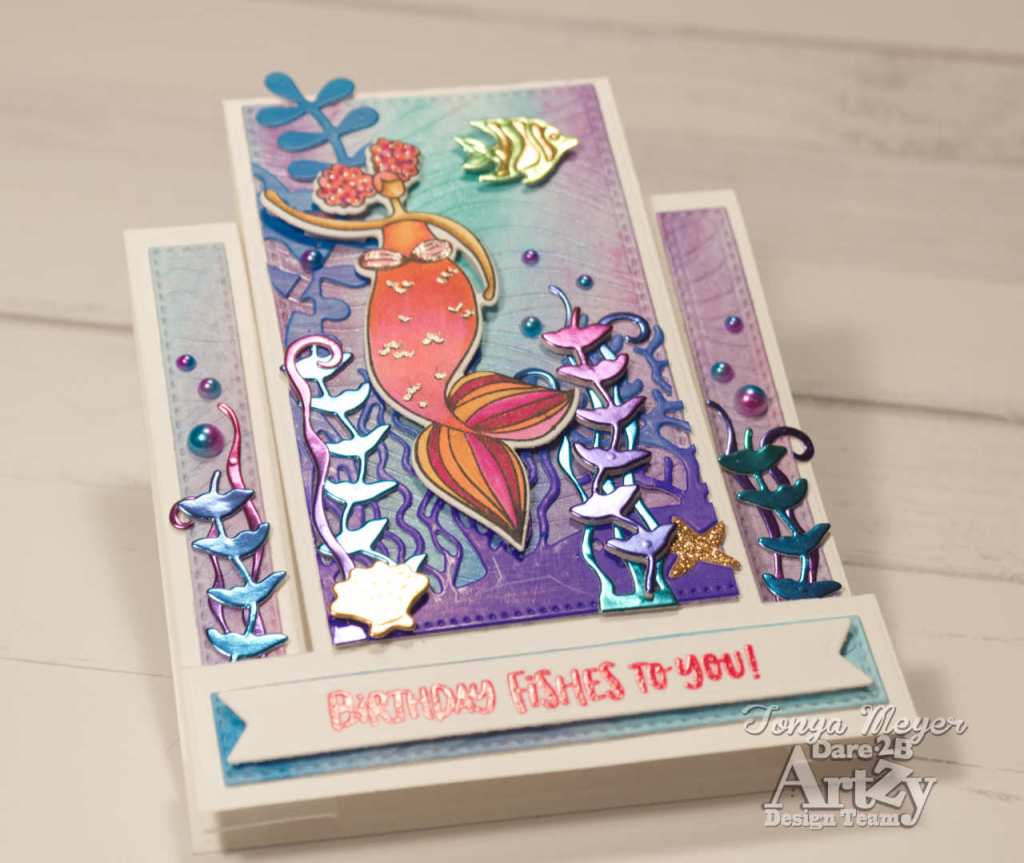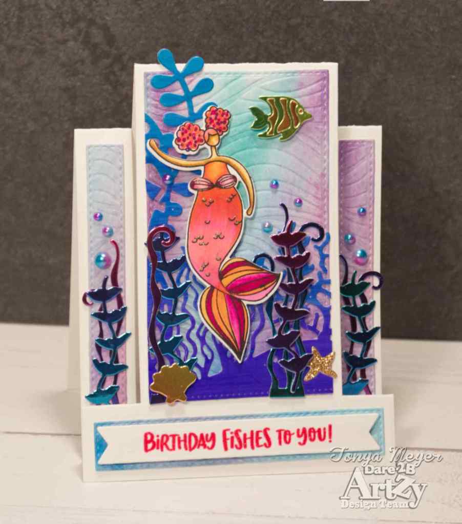 Hello Artzy friends! I am back with another Mermaid card for merMAYzing MAY, LOL! It has been a month of mermaid cards for me and today I have another card featuring several fun Dare 2B Artzy products.