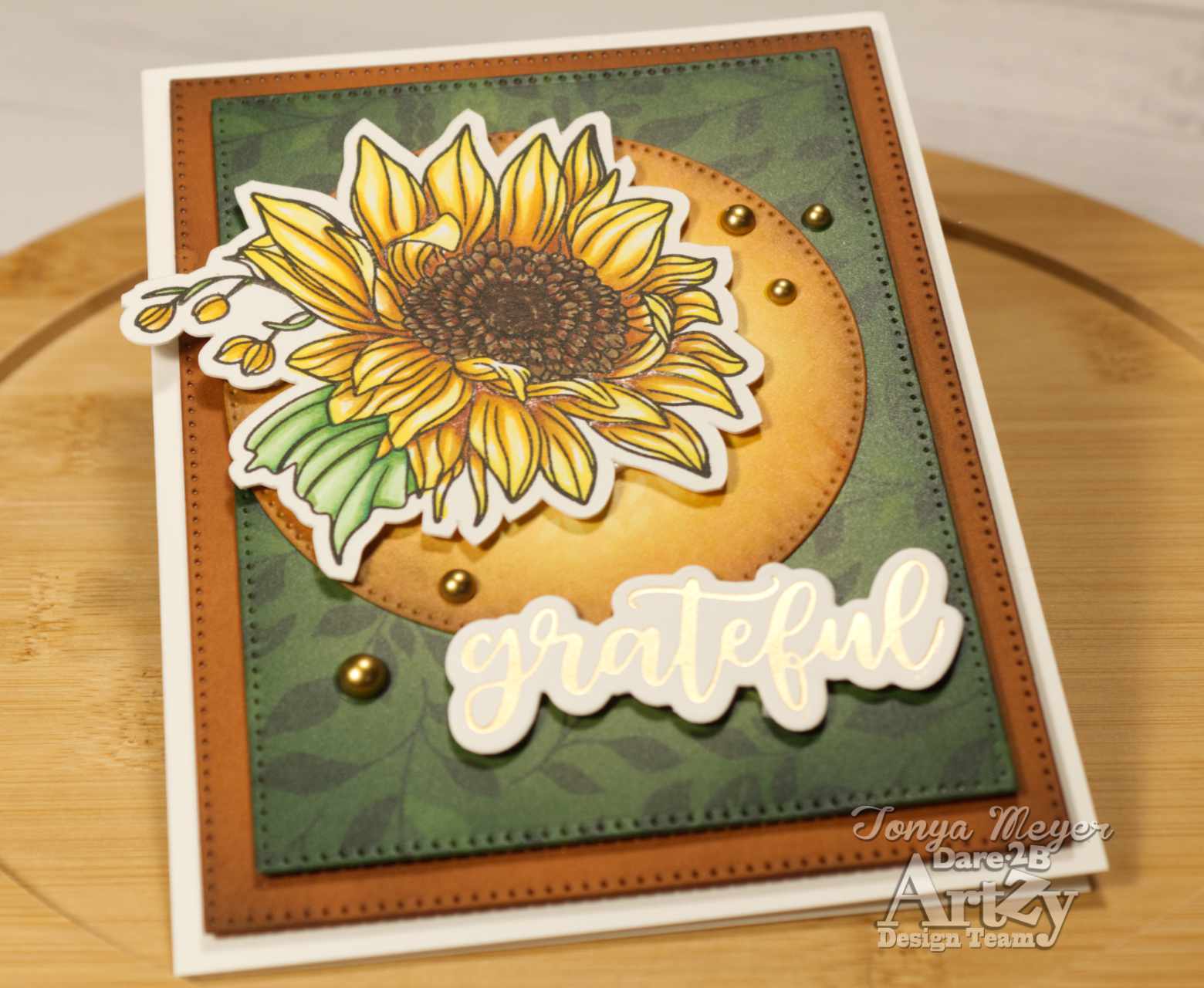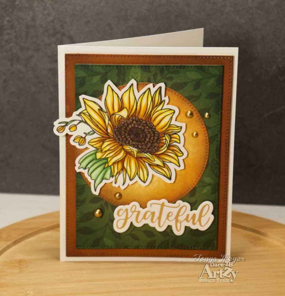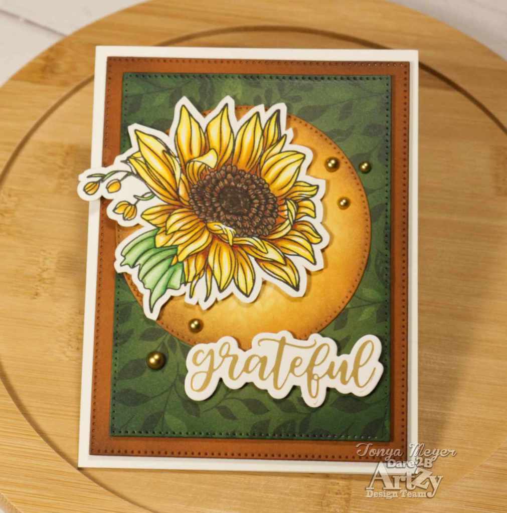 Each of my papers were layered up with dimensional foam. I added my sunflower slightly offset on top of the circle.