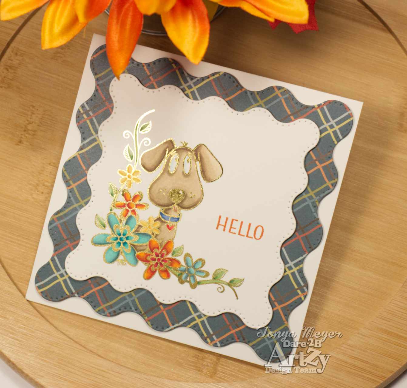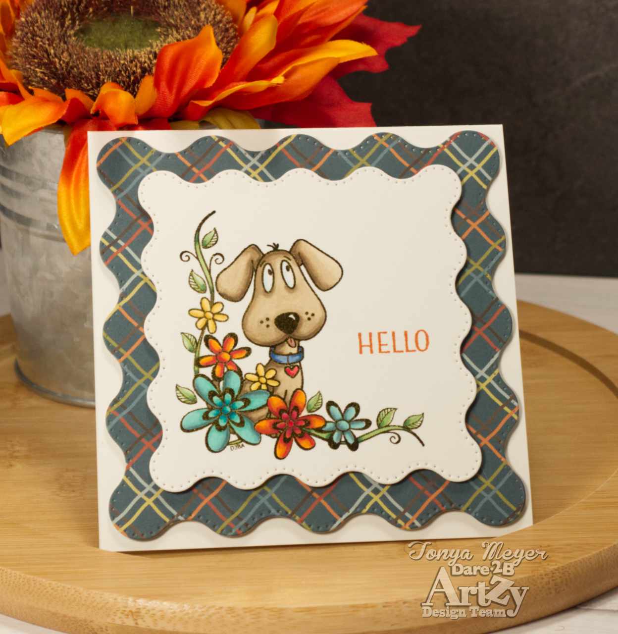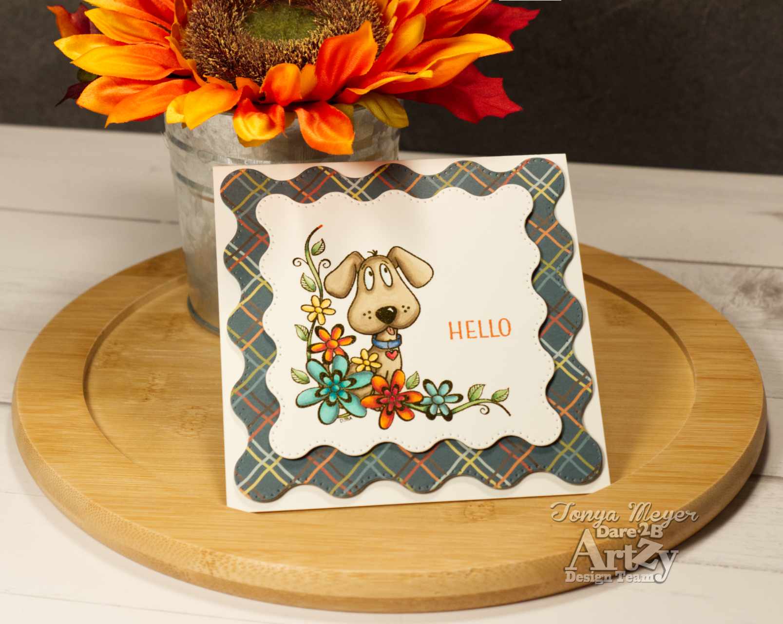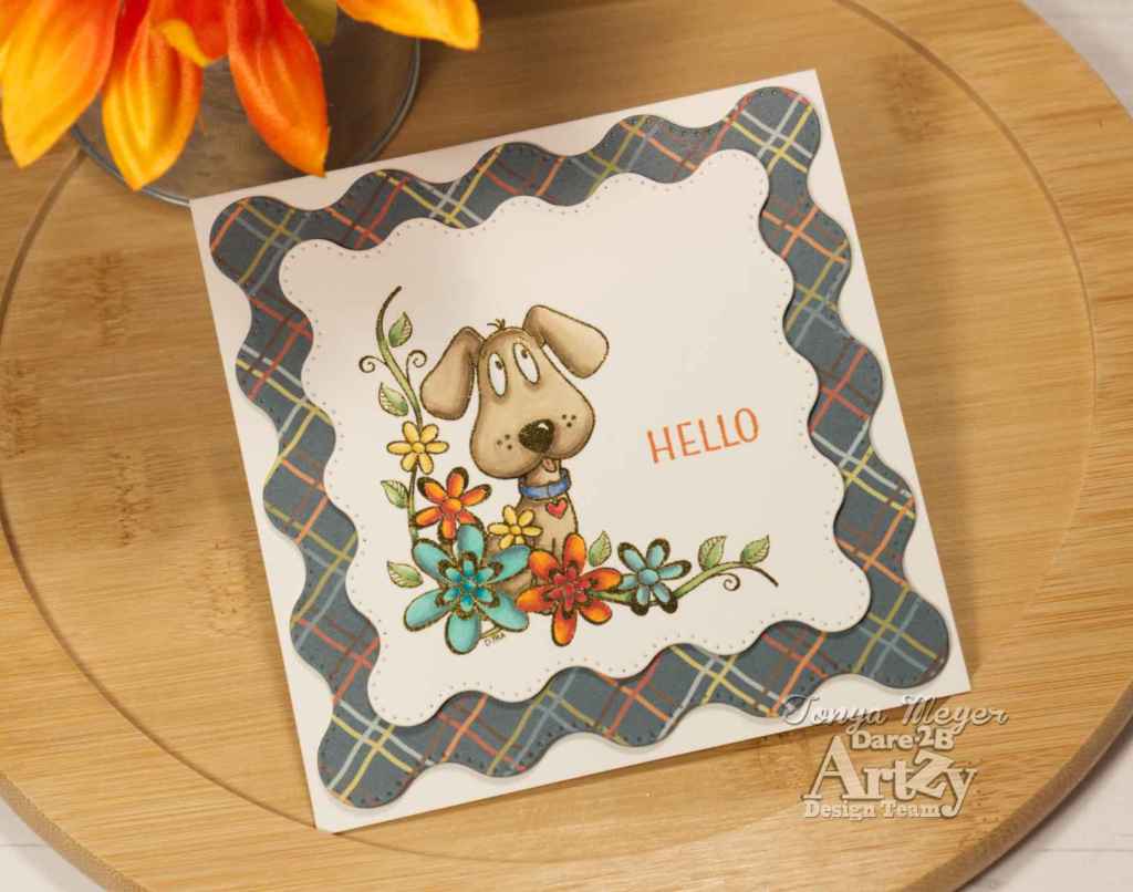 I am back today with a quick and easy card featuring a Dare 2B Artzy digital stamp called Puppy Flower. I was browsing the Dare 2B Artzy online shop and saw that there was a digital stamp section, and this adorable Puppy image was in there and was begging me to color it.