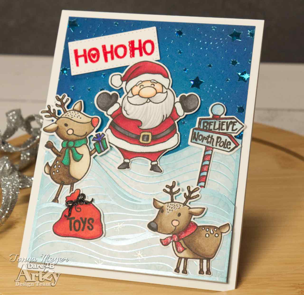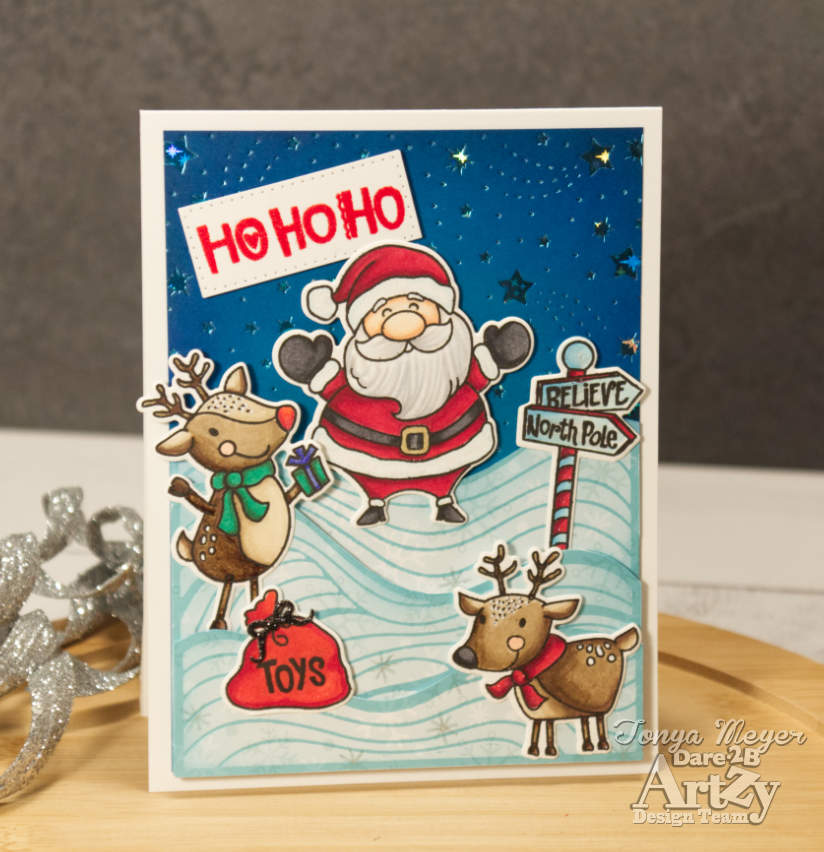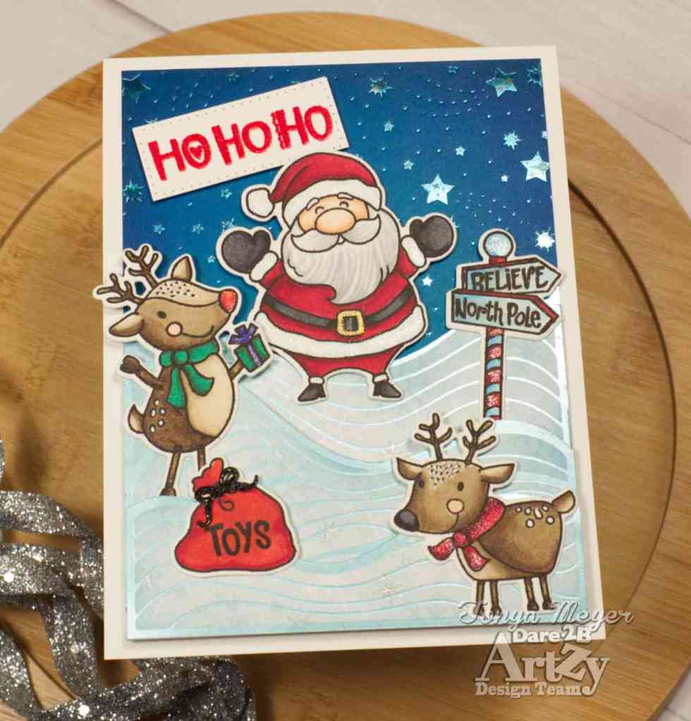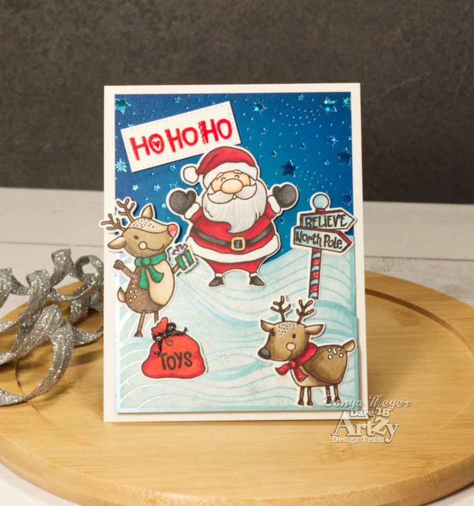 That finished my card featuring the new Santas Reindeer stamp and die set. Hope you’ve enjoyed my card and are inspired to create your own scene cards with this fun new stamp set from Dare 2B Artzy.