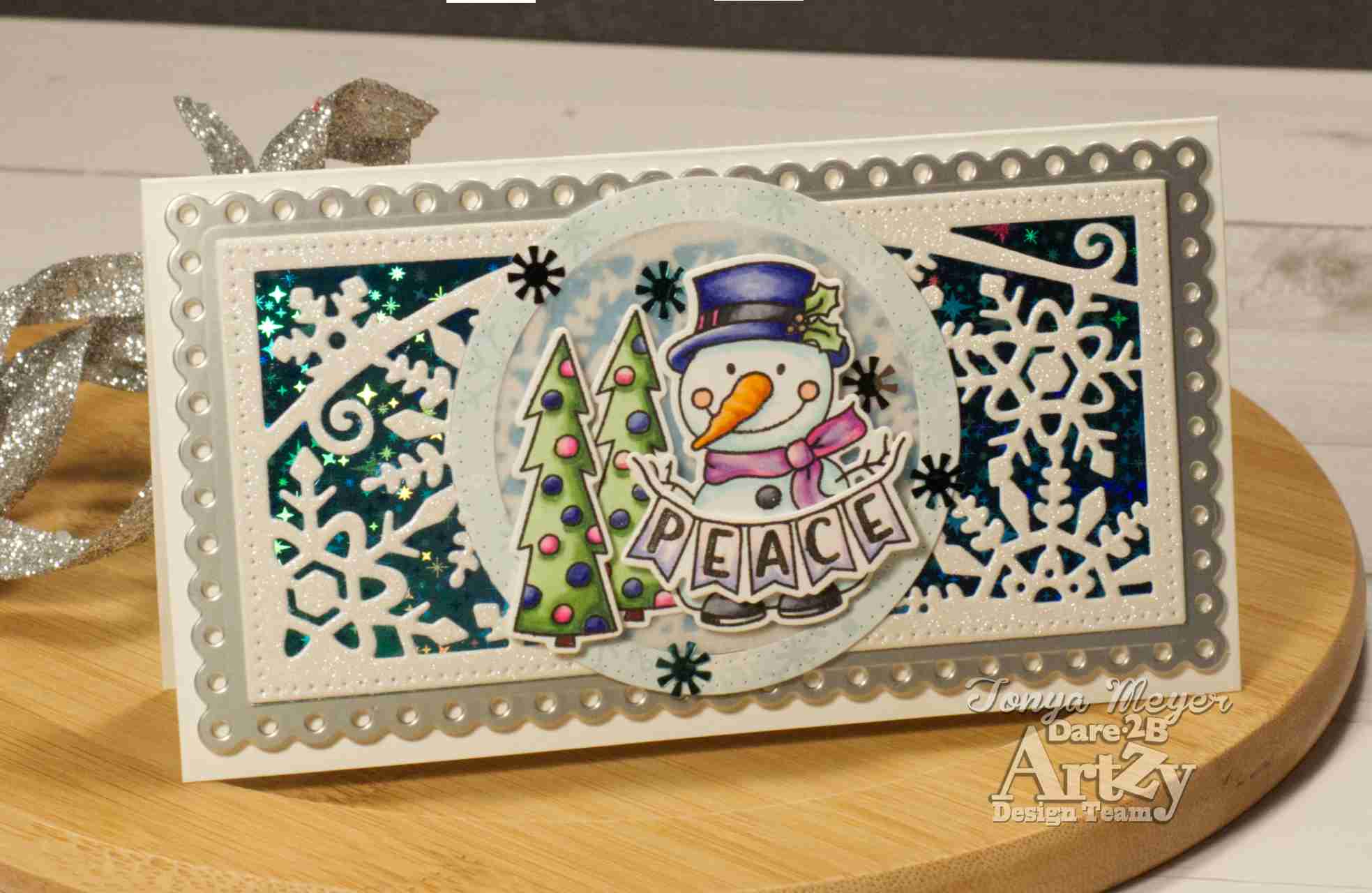 That finishes of my wintry card featuring the new Frosty Hello stamp and die set from the new holiday release over at Dare 2B Artzy.