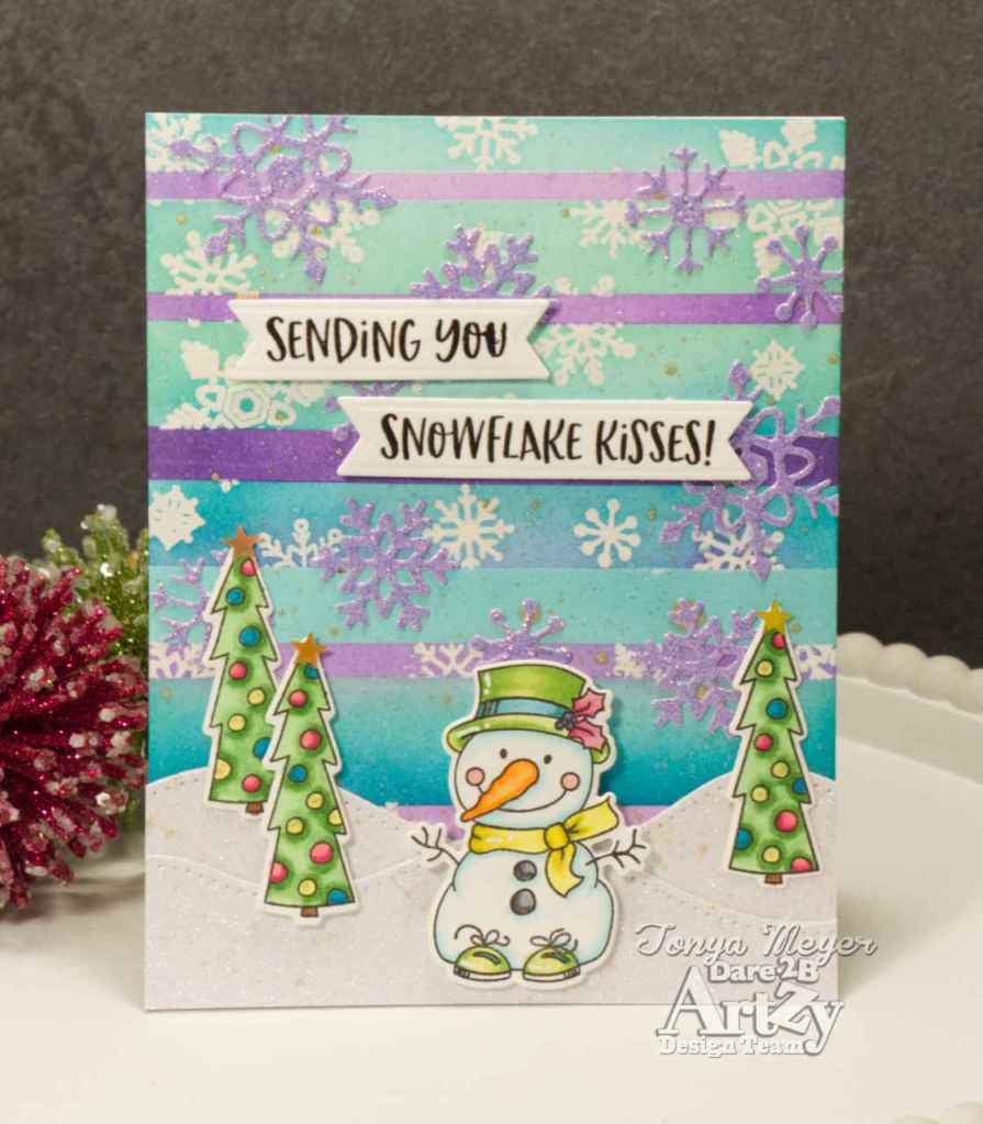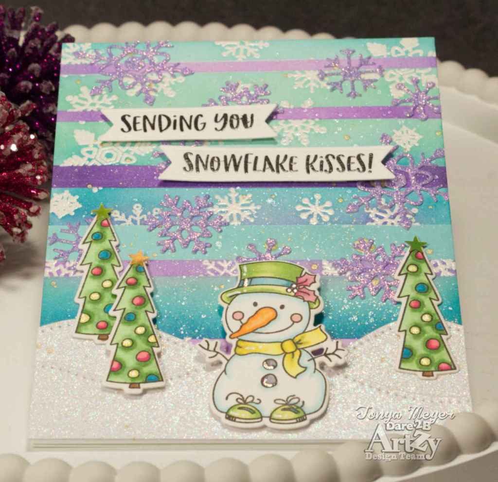 I am back with a new card today for Dare 2B Artzy. This one had me digging out all of my snowflake stamps from various Dare 2B Artzy stamp sets.