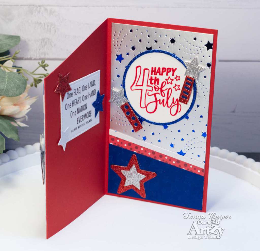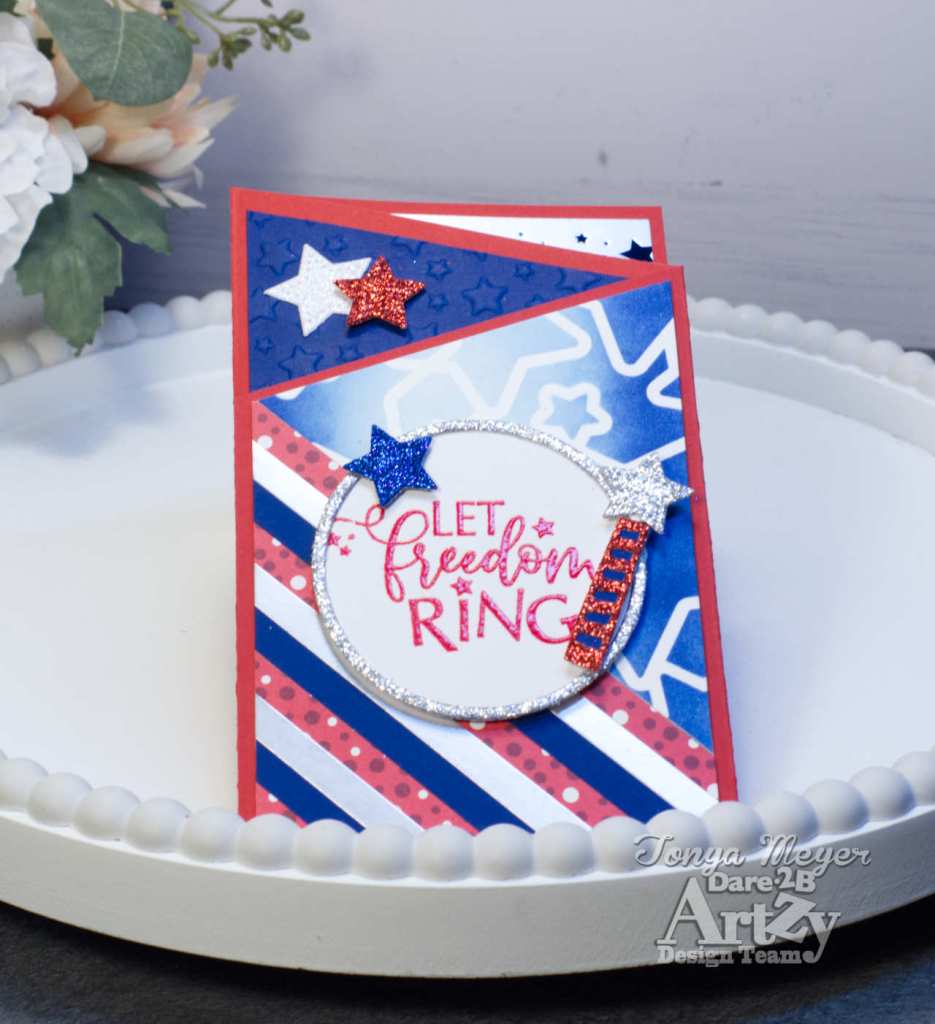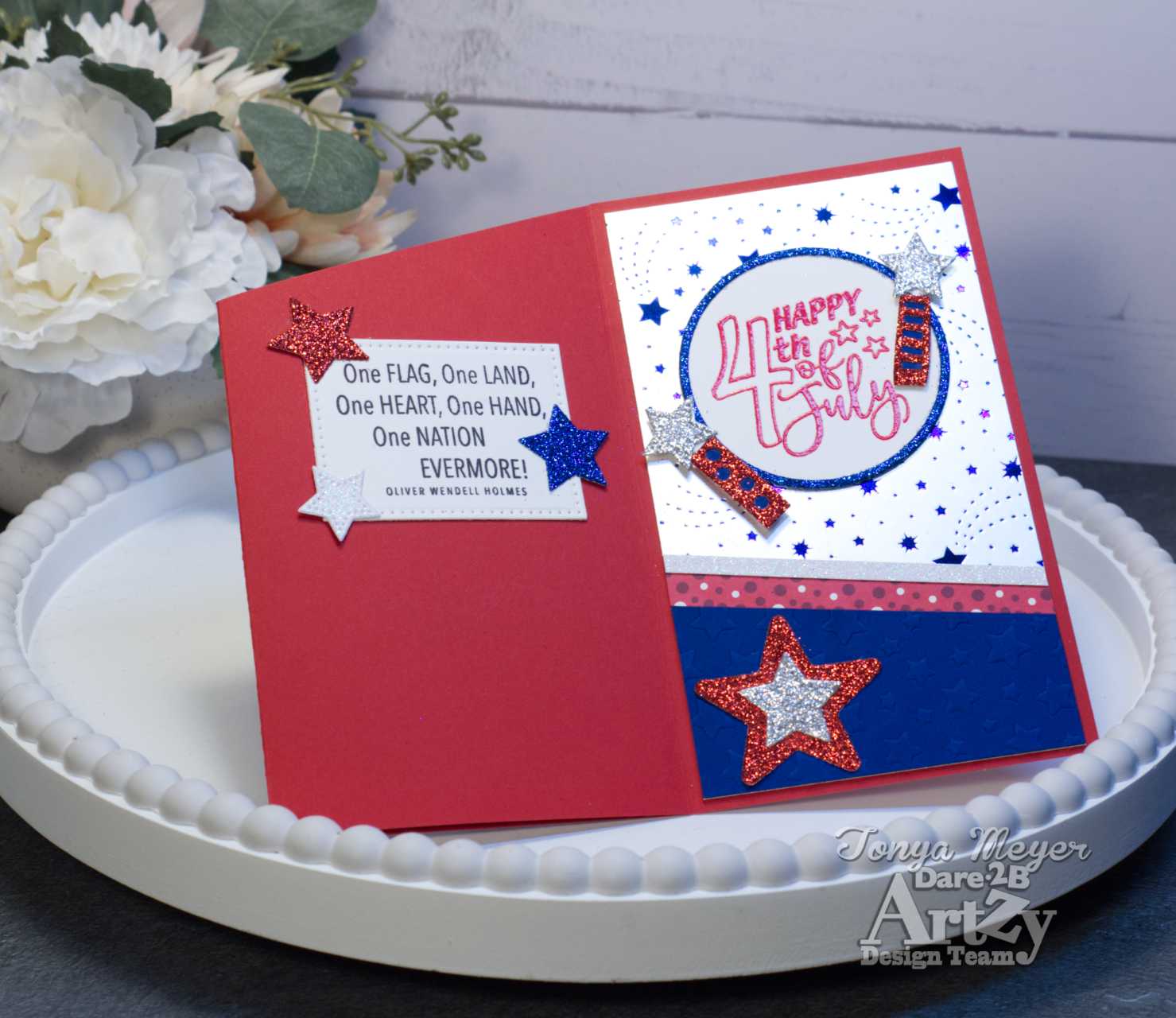 That finished up my card for today! I hope you’ve enjoyed my Dare 2B Artzy 4th of July Card! I love that I was able to take so many products and use them in different ways and repurpose them to create this fun card.