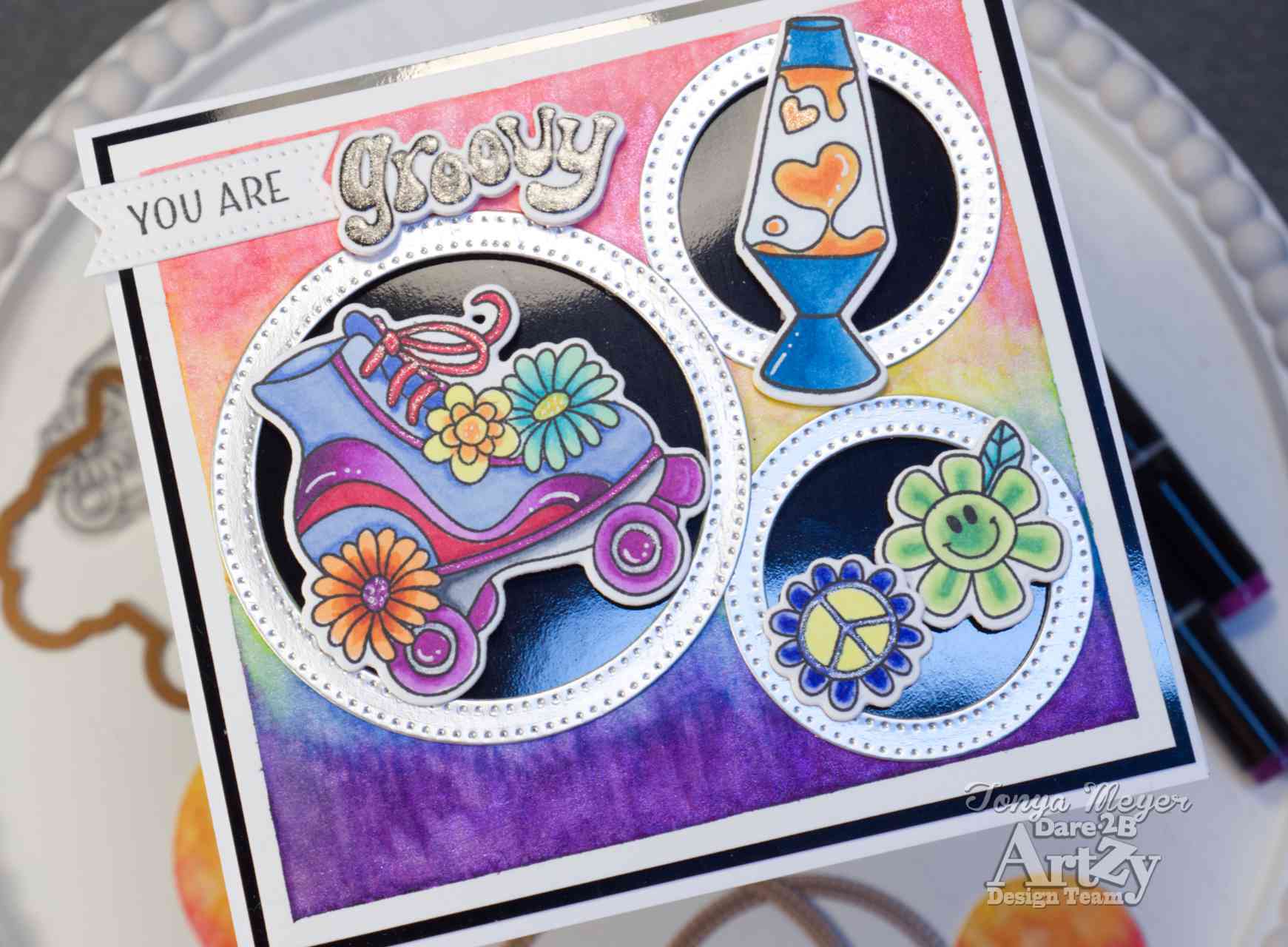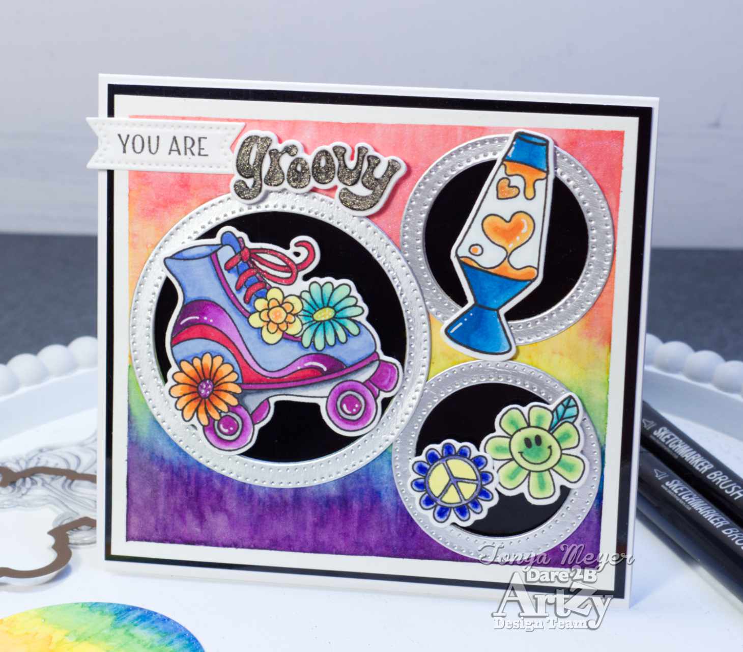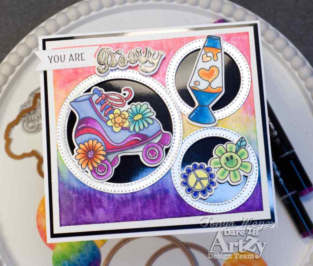 I used the coordinating die to cut out the Groovy sentiment. I added them to the top left on my card and popped the Groovy up with 2 layers of dimensional foam.