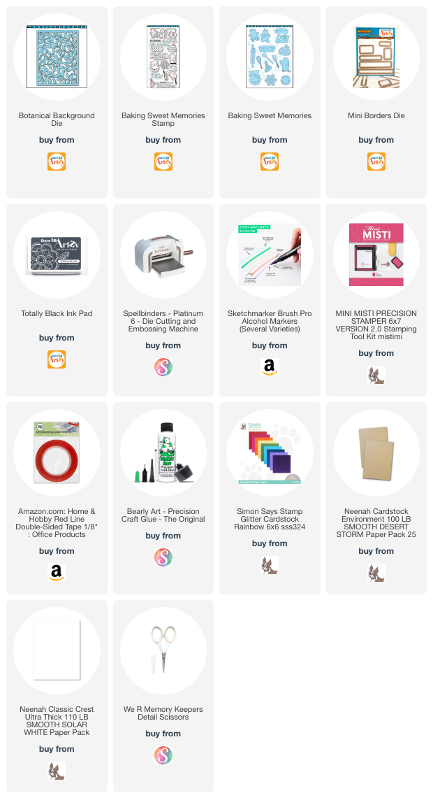 Today I am having fun with the new Baking Sweet Memories stamp and coordinating die from Dare 2B Artzy. This amazing new stamp set has 14 adorable images to color and 7 mix and match sentiments. The coordinating die cuts out all of the fun images.