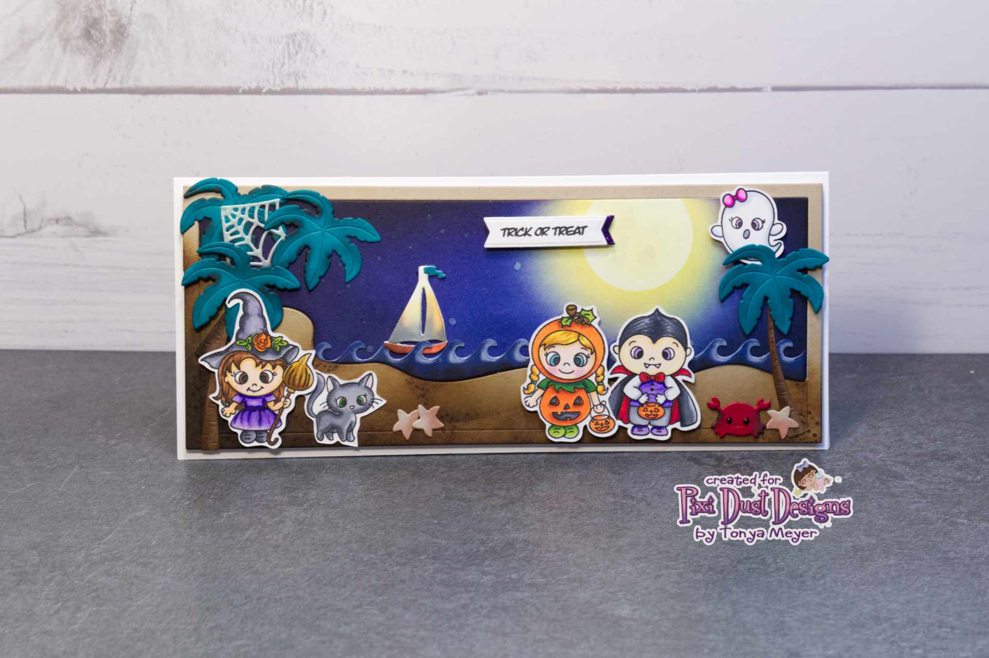 Today, I have a new video over on my YouTube channel for Pixi Dust Designs featuring the fun Trick or Treaters Stamp set paired with the Slimline Beach Day Die set.