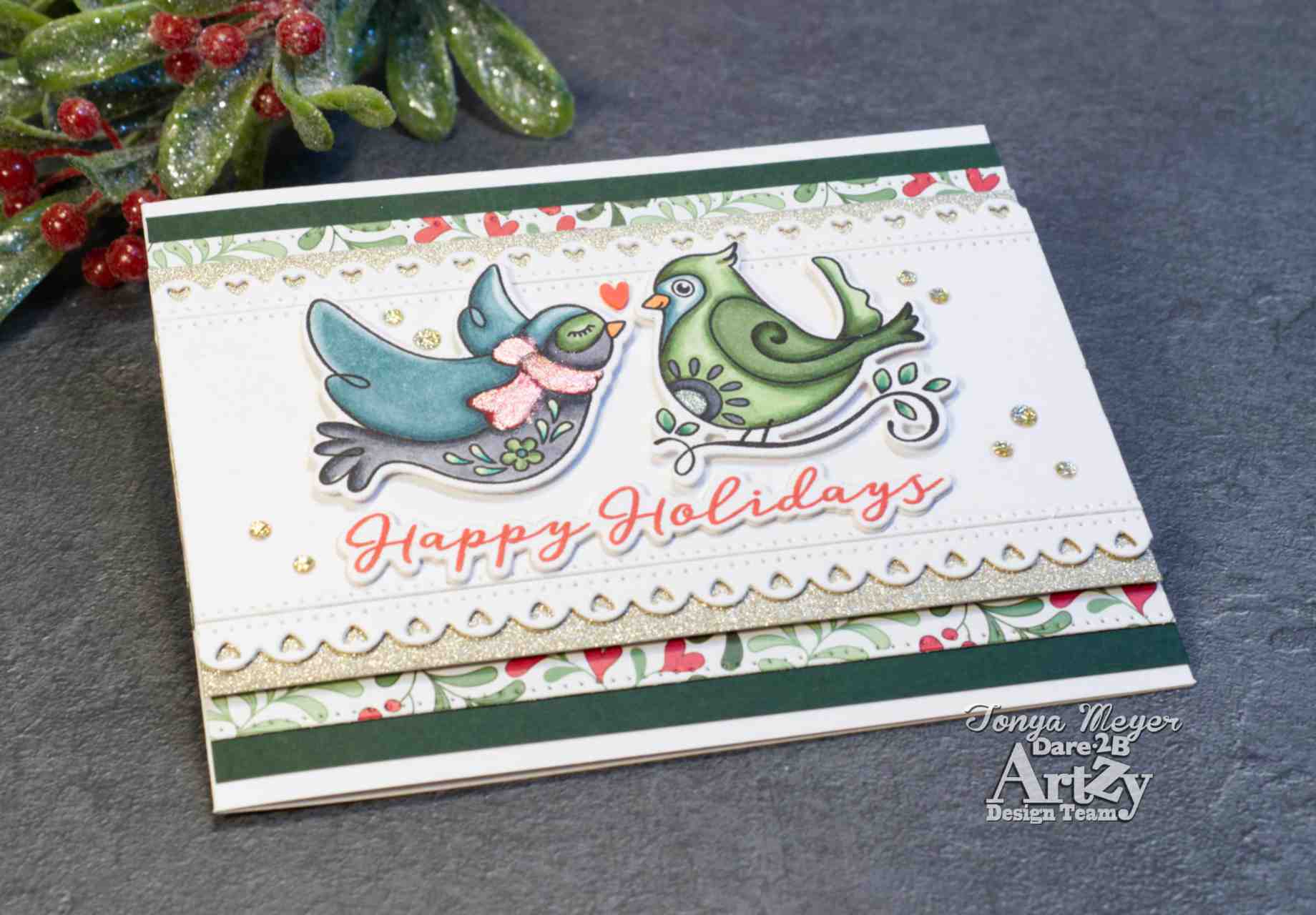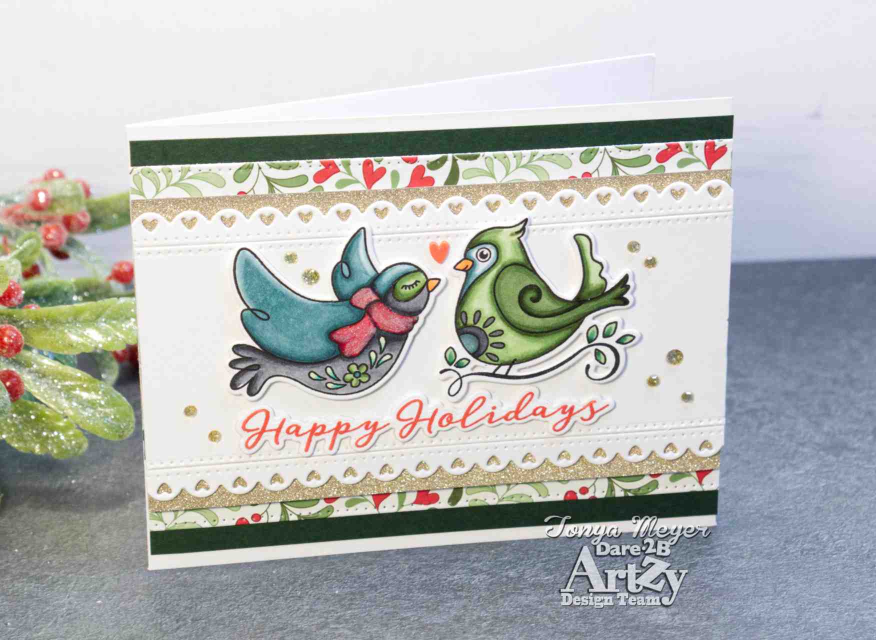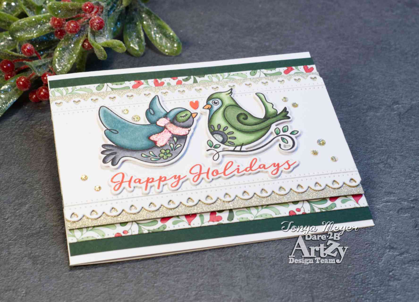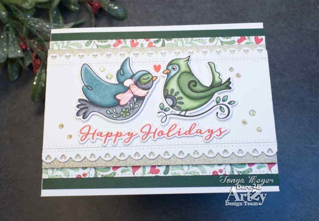 Today I have a new Holiday card featuring the new Holiday Birds Stamp and Die set from Dare 2B Artzy.