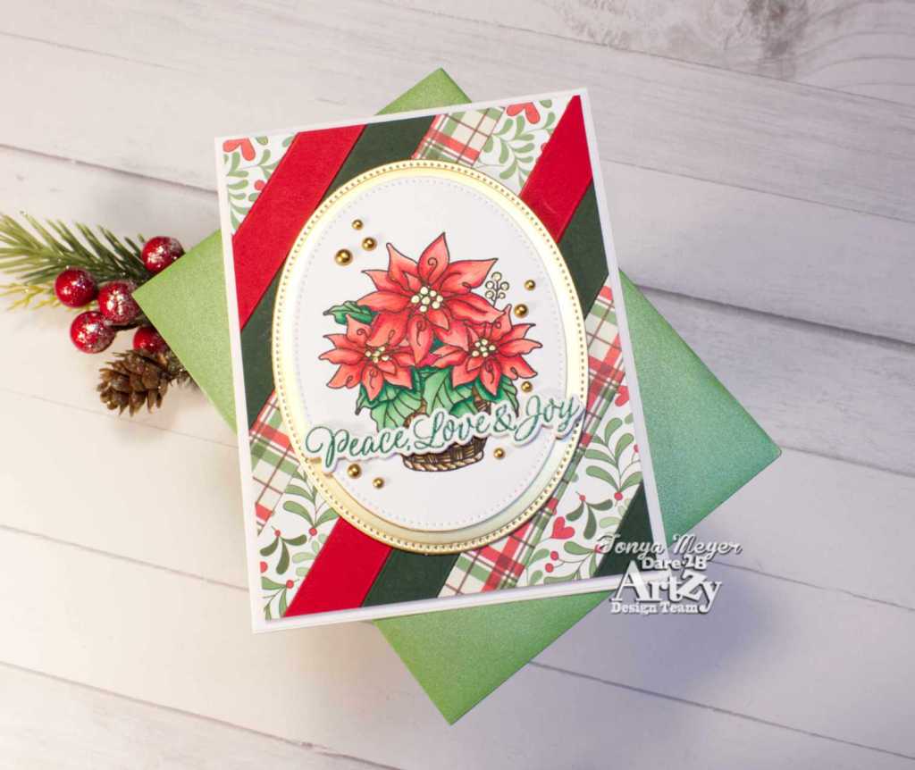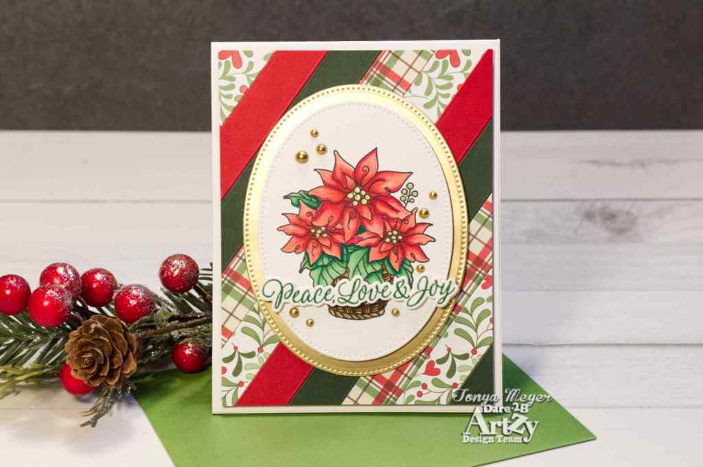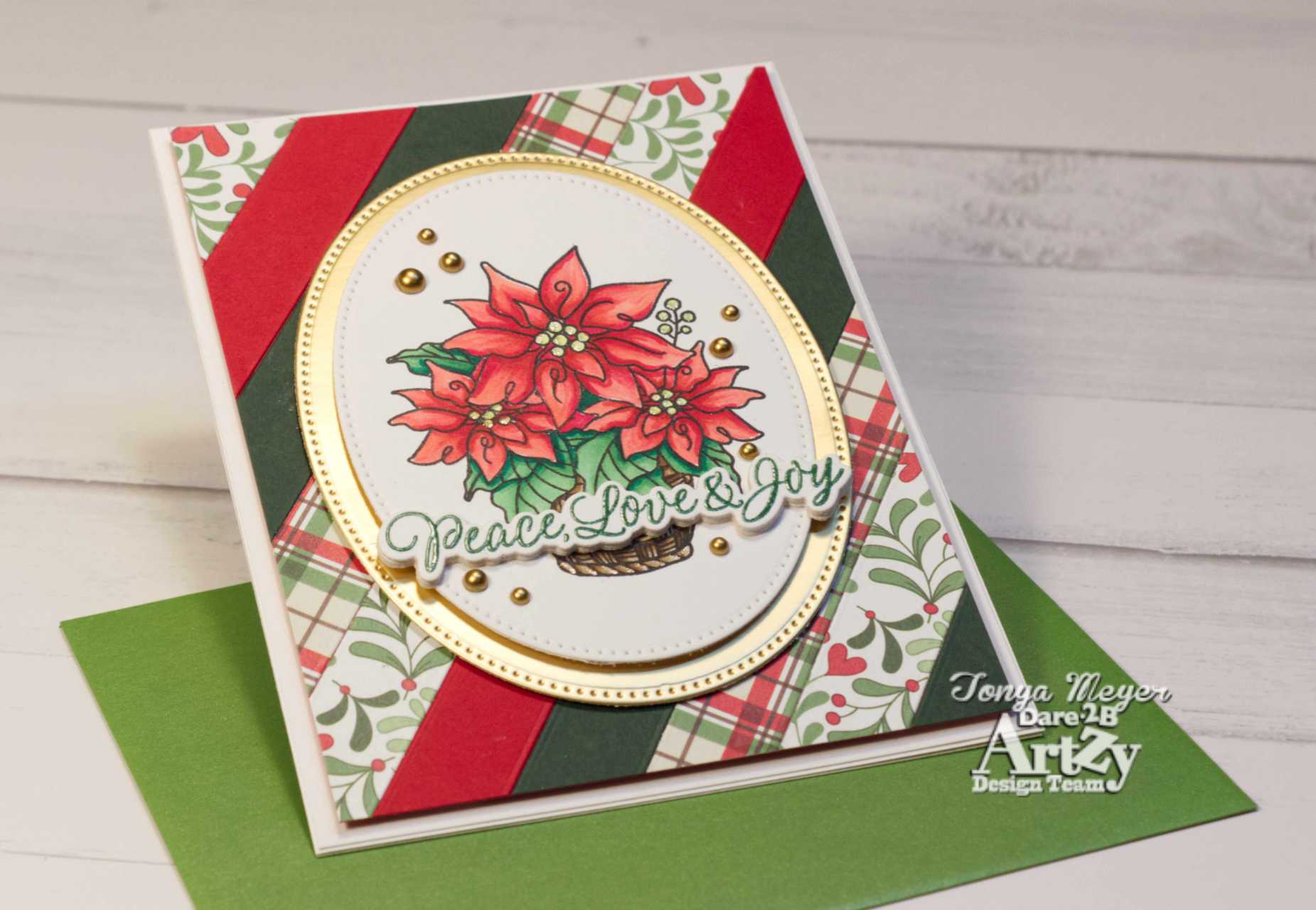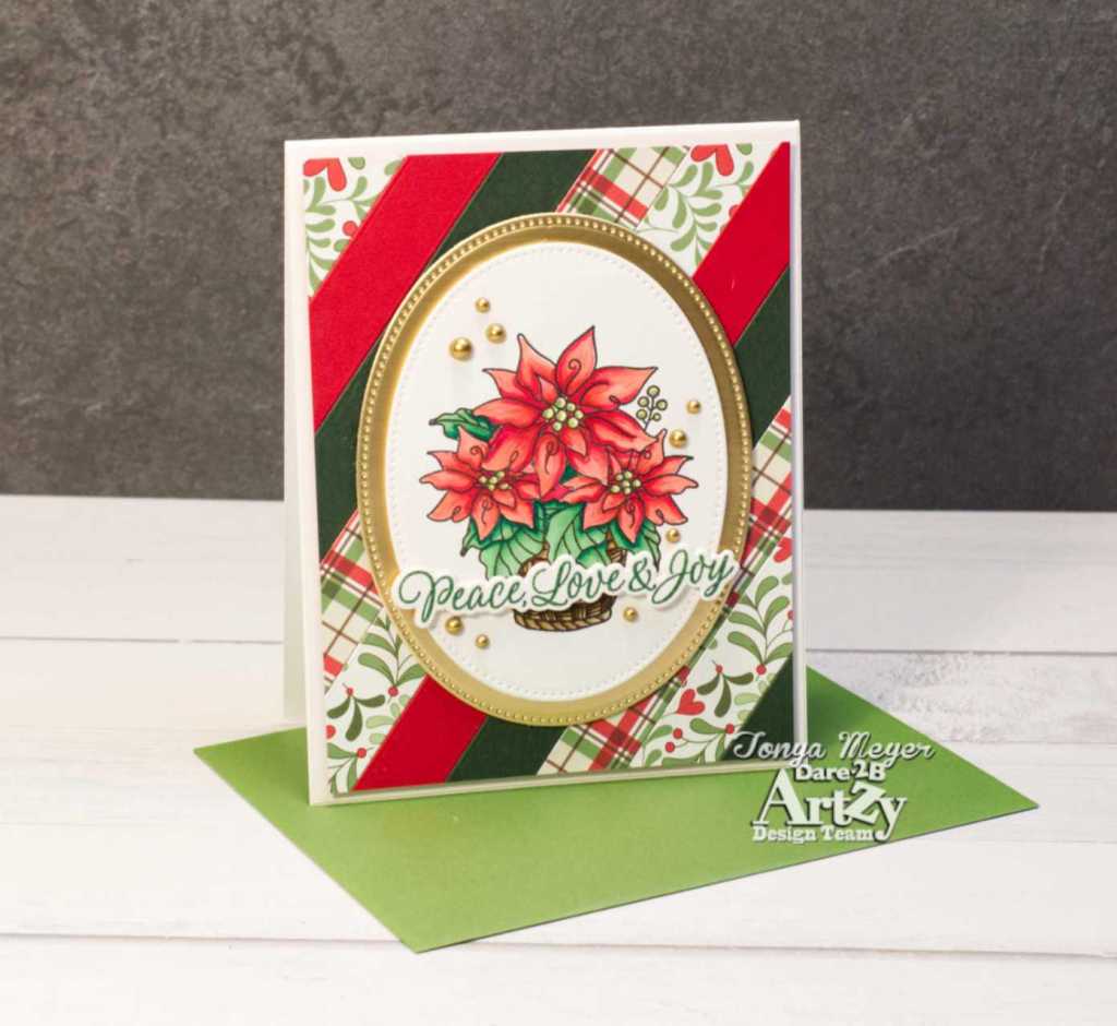 Today I have a new card featuring the Poinsettia Basket stamp and die set from Dare 2B Artzy. I love the poinsettia basket. It’s perfect if you are in the mood to color and makes for a beautiful card.
