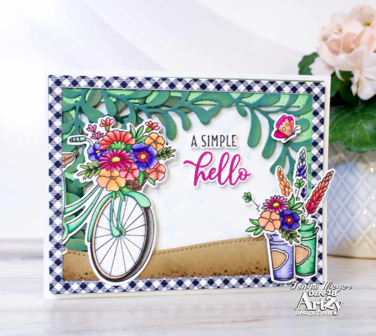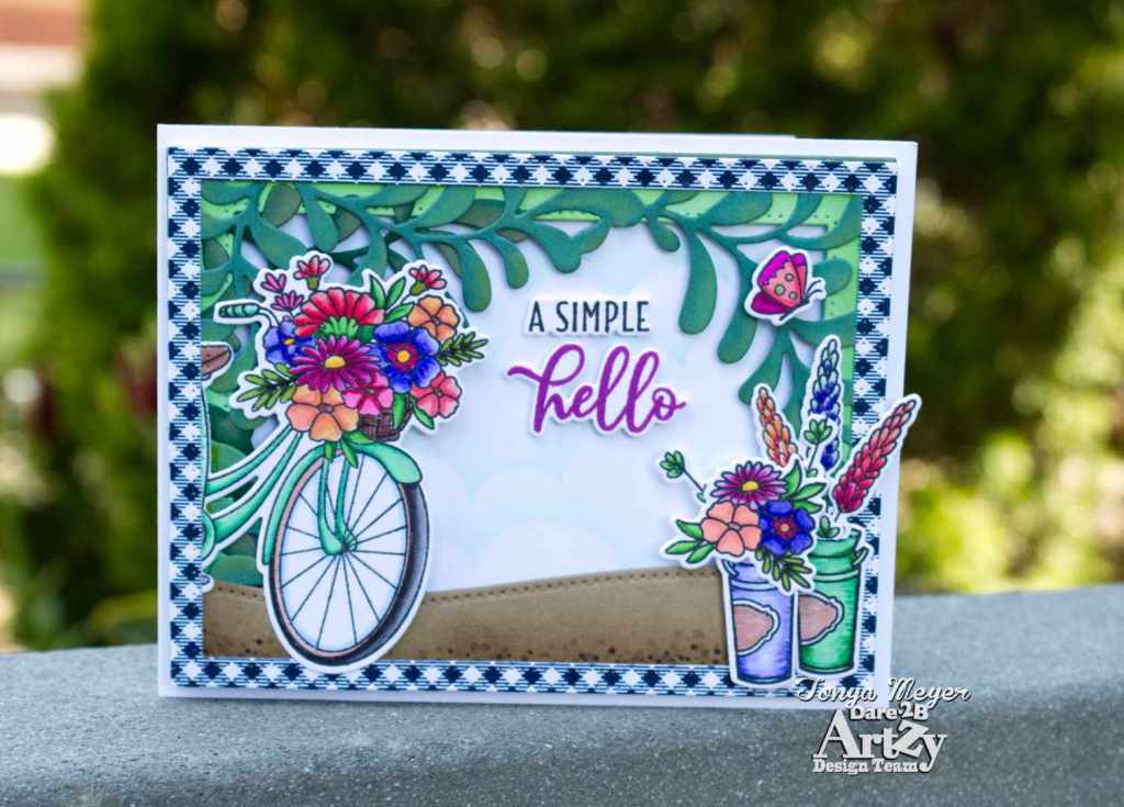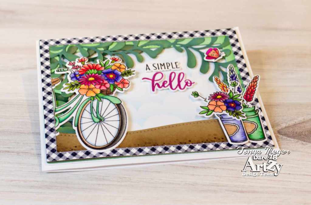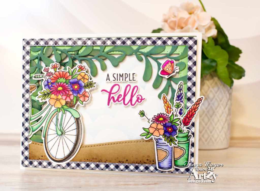 I have been playing with the Bicycle Bouquet stamp set from Dare 2B Artzy and I have a fun new card to share with you today.