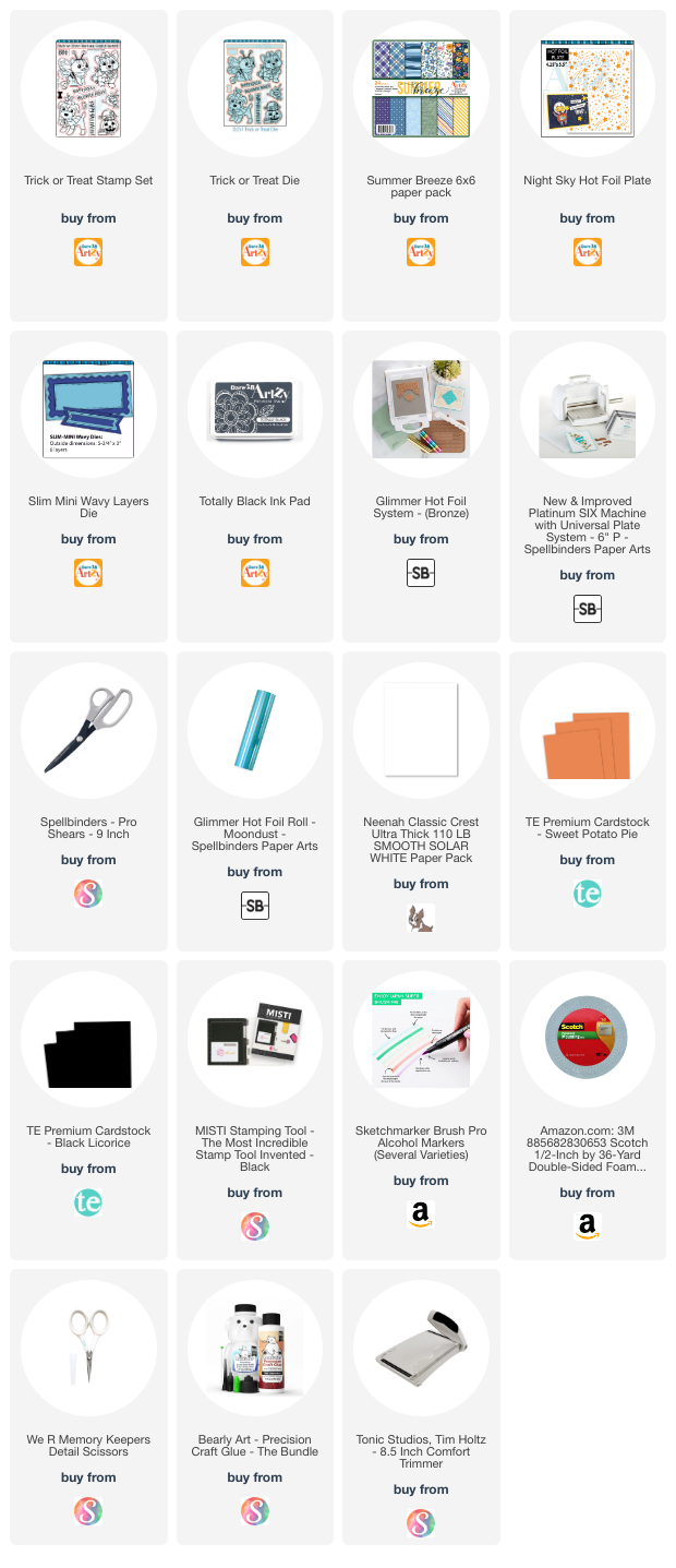 Thanks for stopping by! Please check out the new Trick or Treat stamp and die over on Dare 2B Artzy.com. I will have all of the products used in today’s card linked below for your convenience.