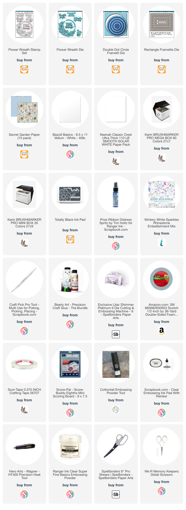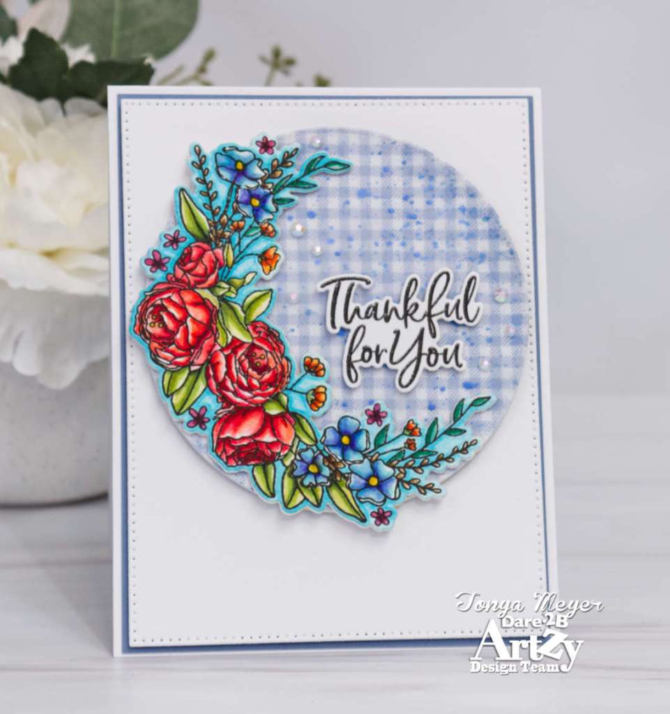 Thank you so very much for stopping by. I hope you enjoyed today’s card and are inspired to create something yourself with this beautiful Flower Wreath stamp and die set. If you like this stamp set, please be sure to check out the monthly Stamp & Die Club over at Dare 2B Artzy here: https://dare2bartzy.com/pages/artzy-clubhouse