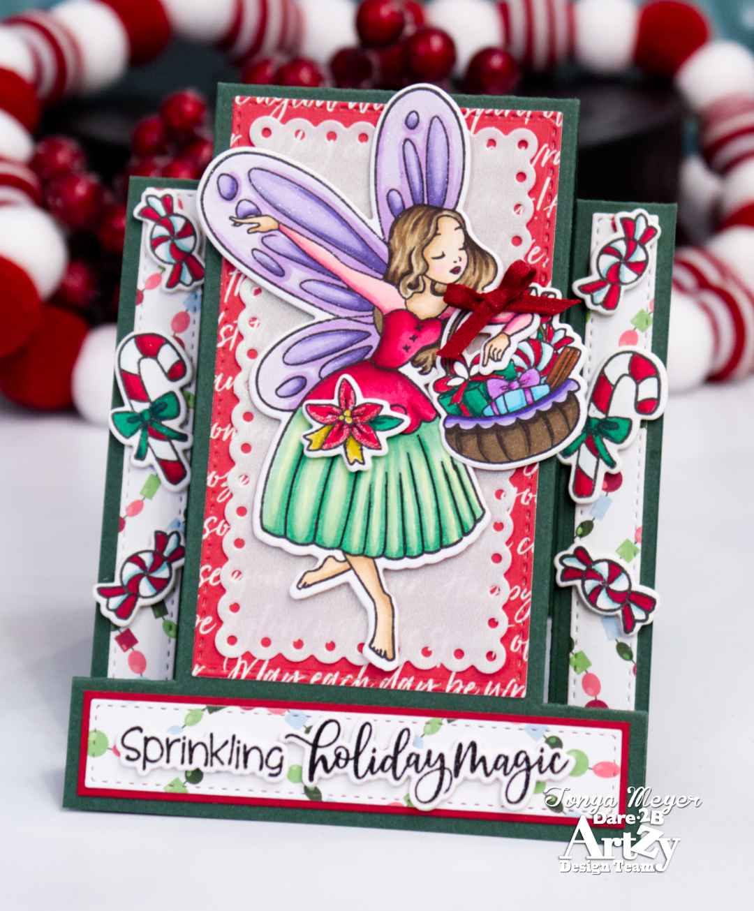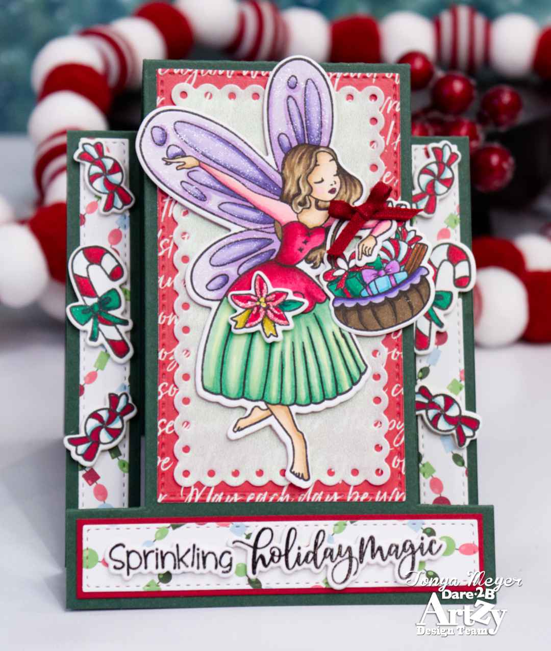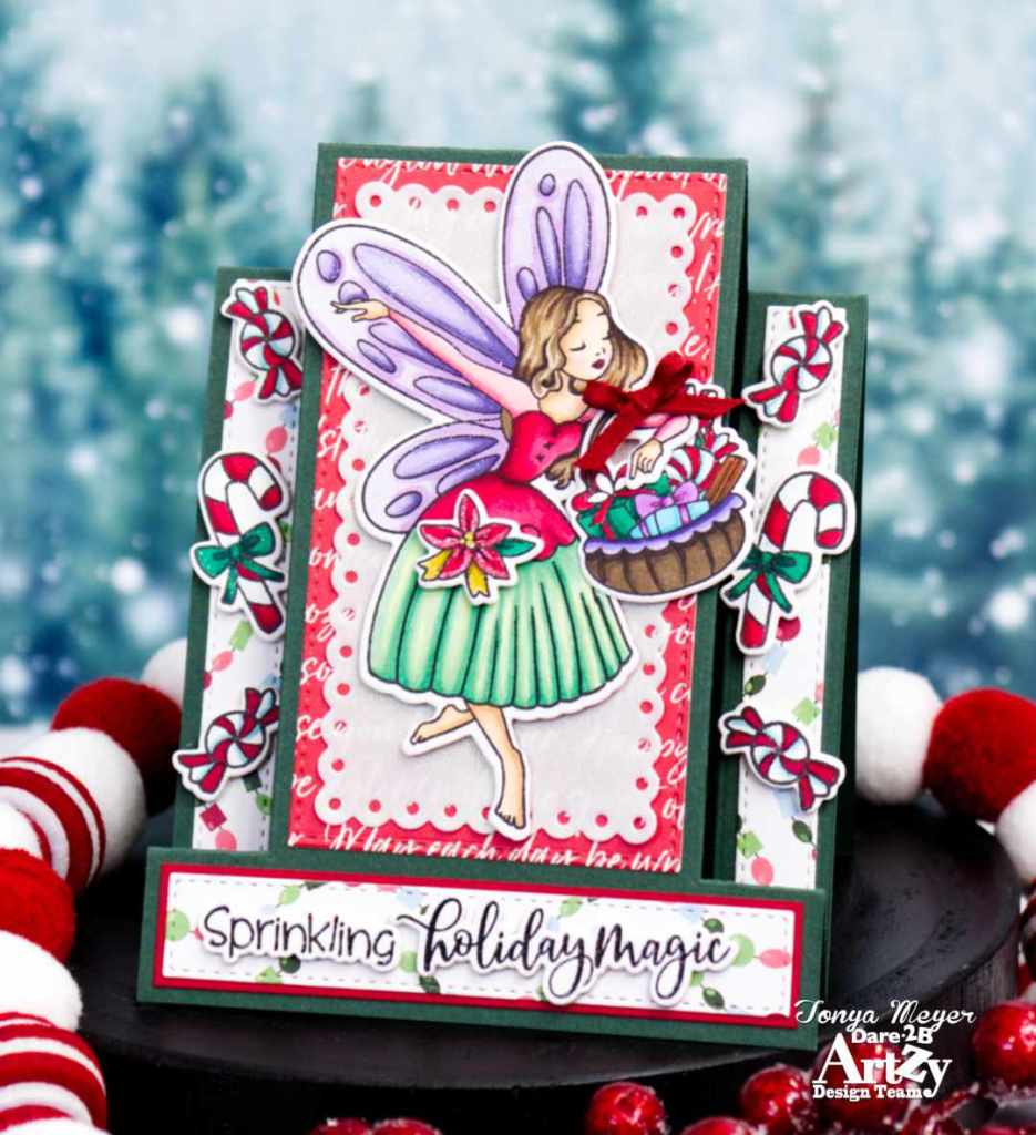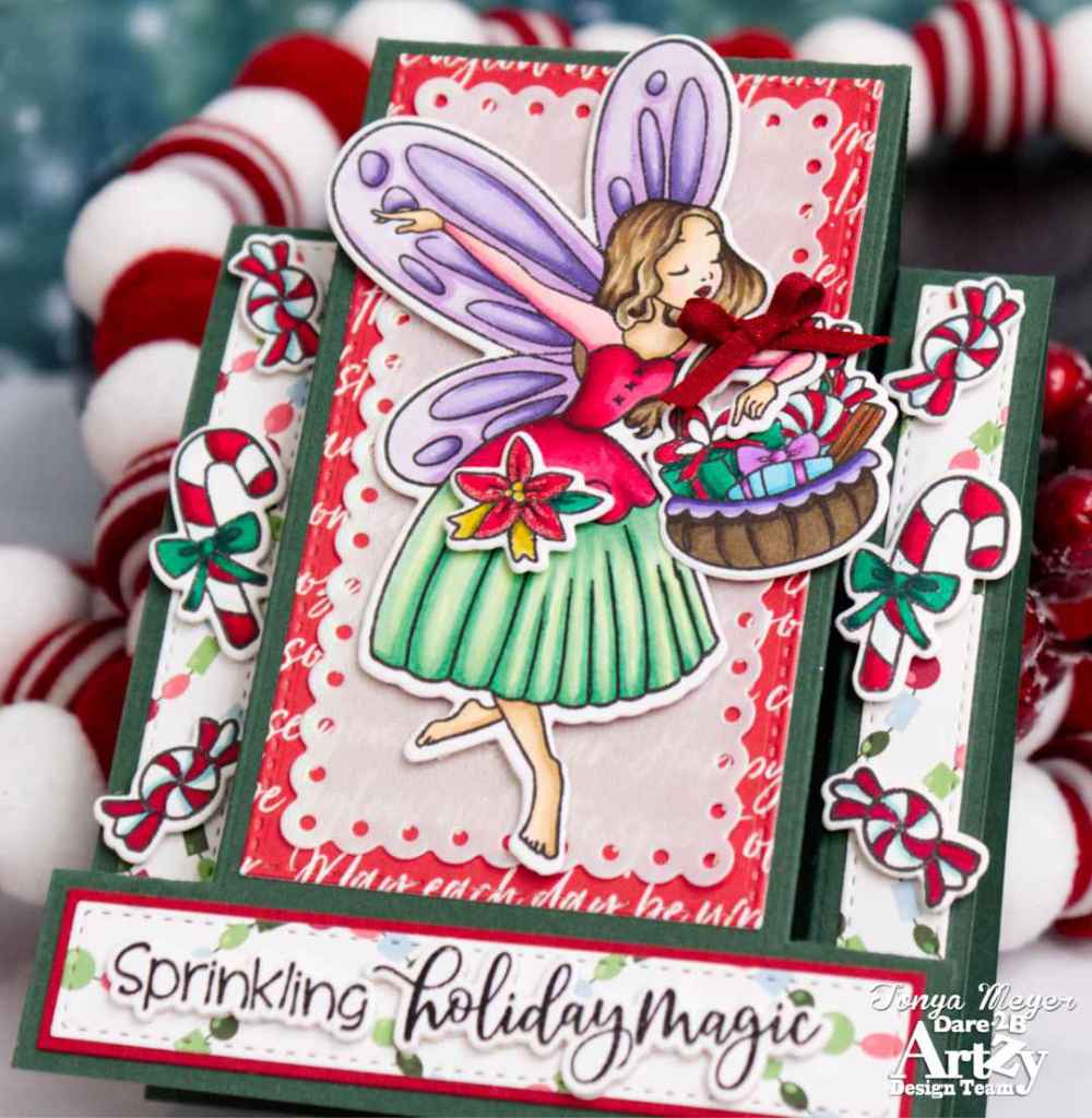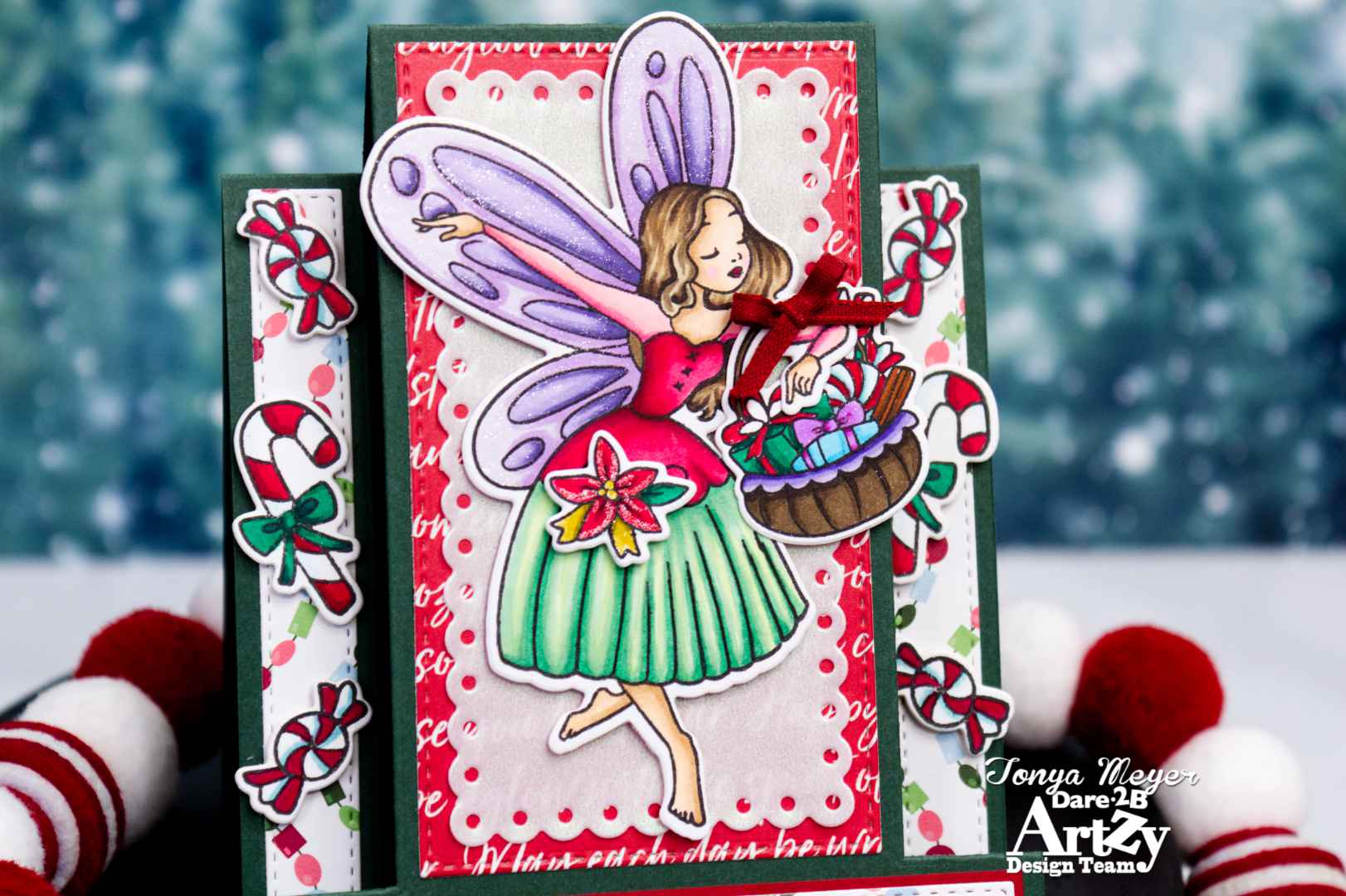 That finishes off my card. It features the Holiday Fairy stamp and die set and the Center Step Die set from Dare 2B Artzy.