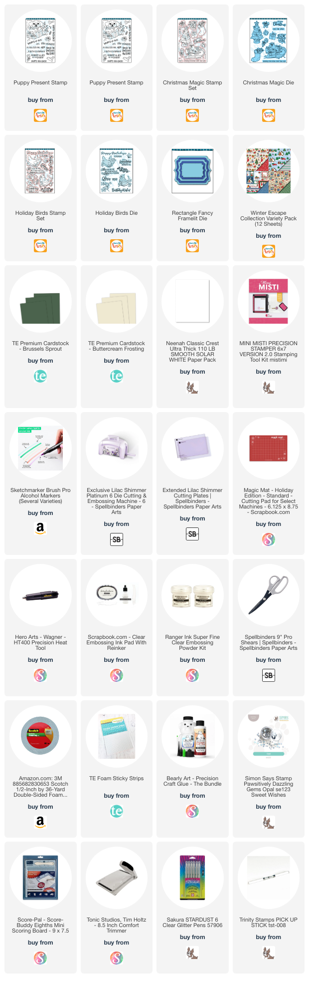 I added the die cut Puppy Present image with some dimensional foam. The Santa hat was added to the adorable puppy with some liquid glue. I also added the additional gift package with some liquid glue to the right of the box.