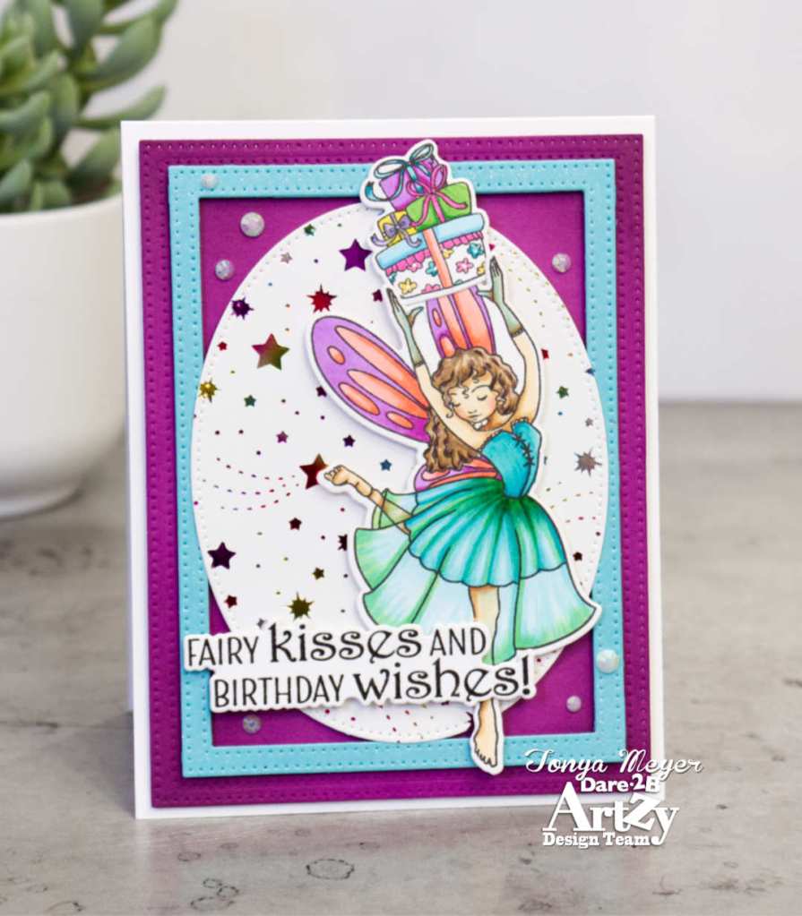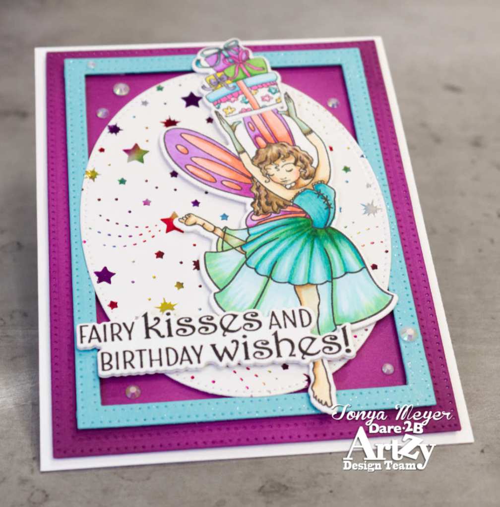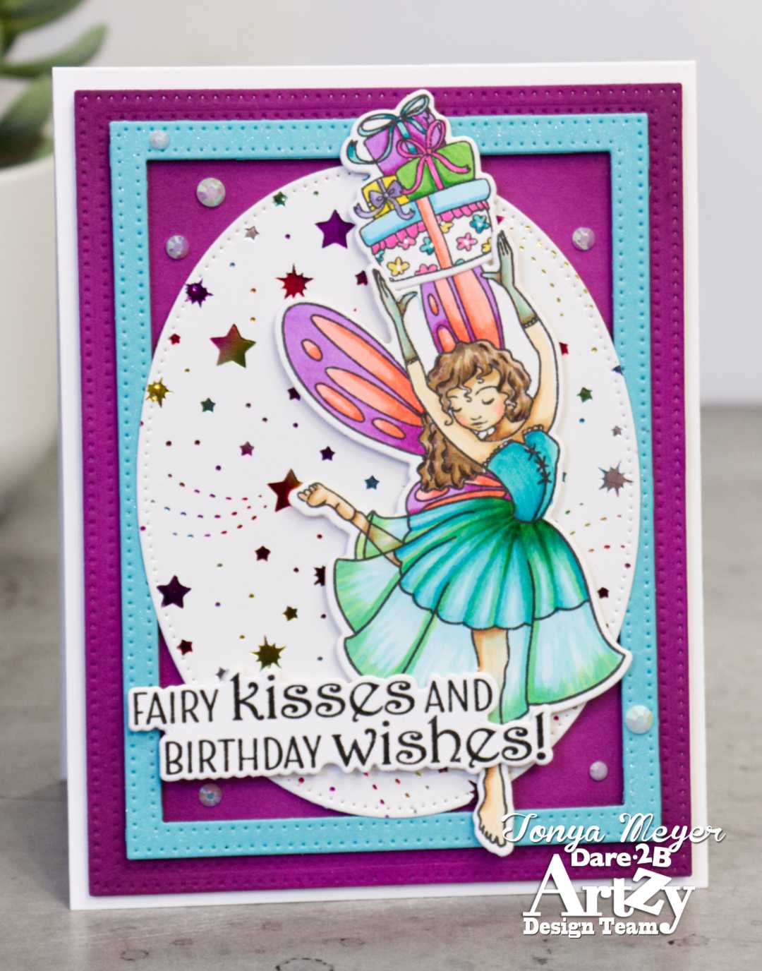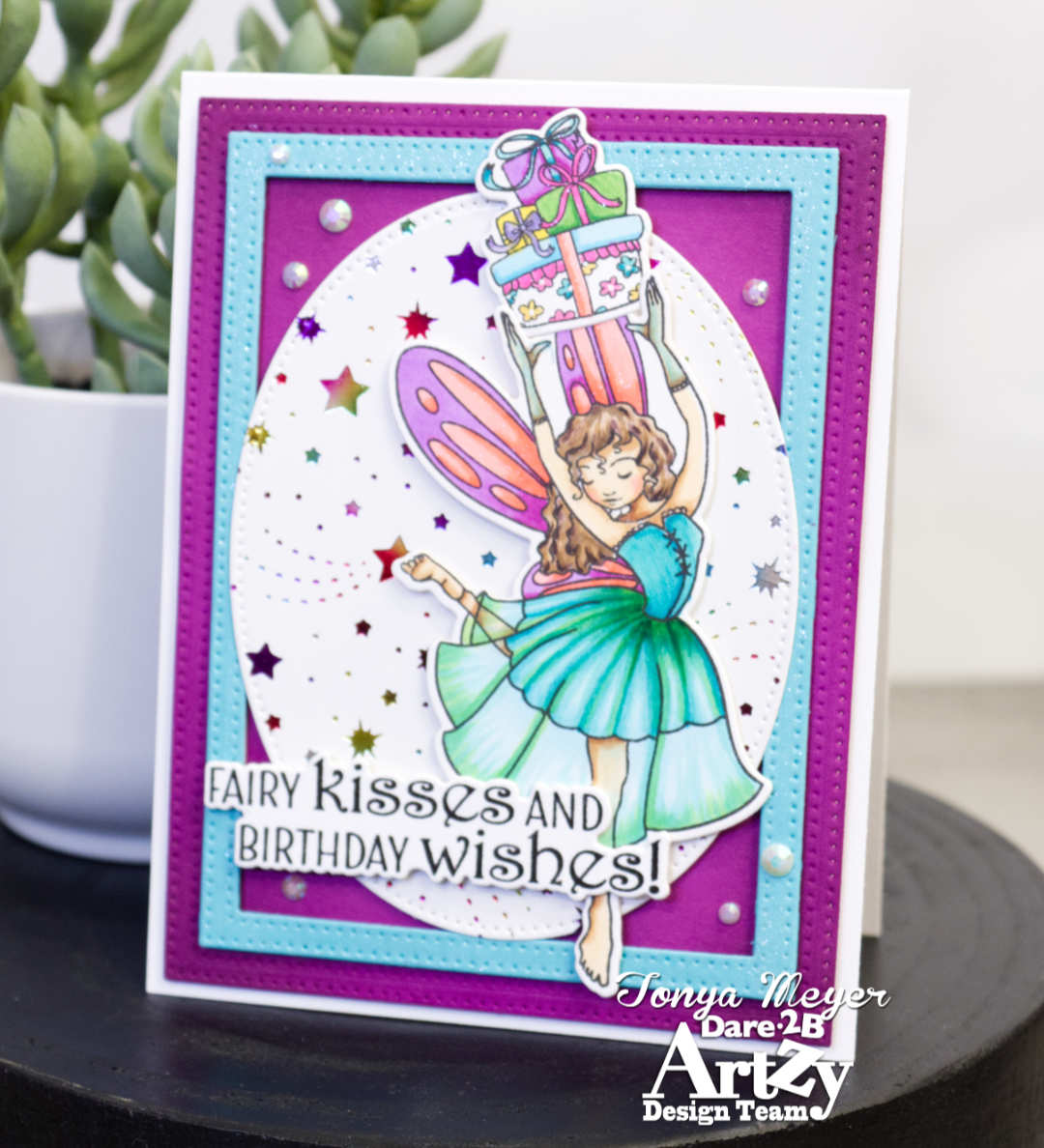 Today, I have a new card for you featuring the new Dare 2B Artzy Birthday Fairy stamp and die set. I love all things fairy and it’s always fun to color them because you can color them any color you can imagine.