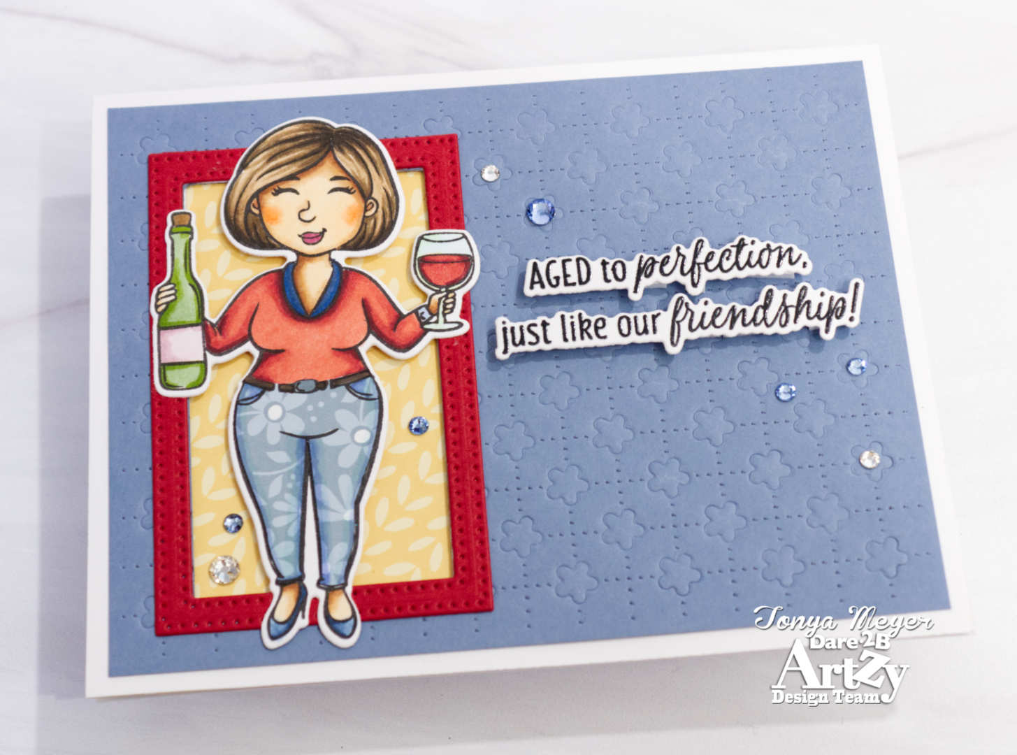 I have a fun card today for Dare 2B Artzy featuring the Wine Between Friends stamp and coordinating die set.