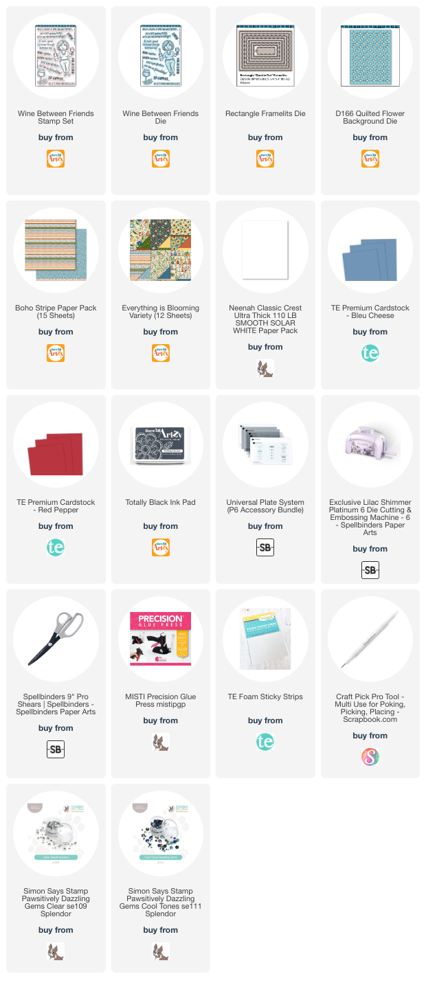 That wraps up my card for today. Please check out the Dare 2B Artzy Facebook Group “Artzy Community” for much more inspiration using the Wine Between Friends stamp and die set.