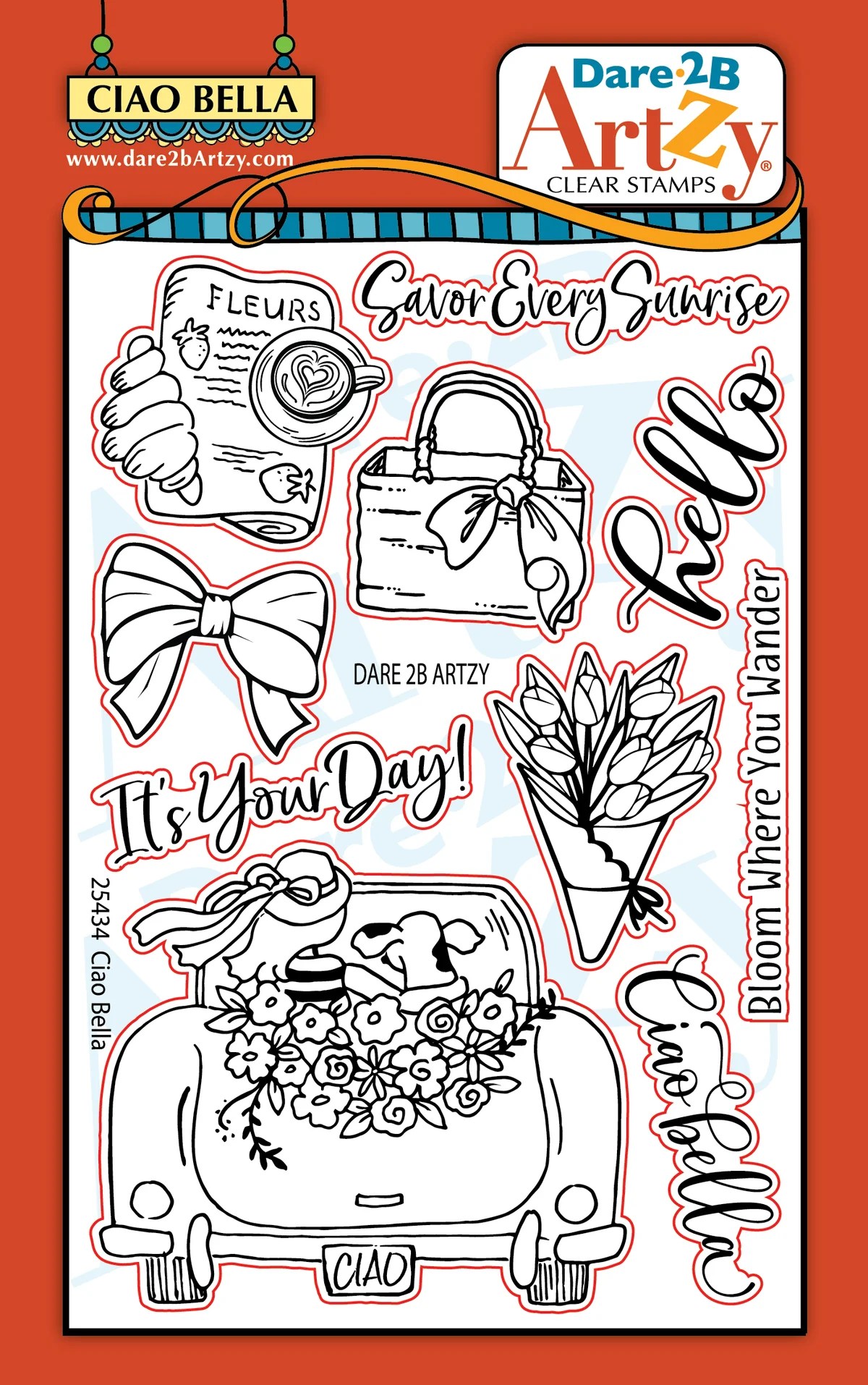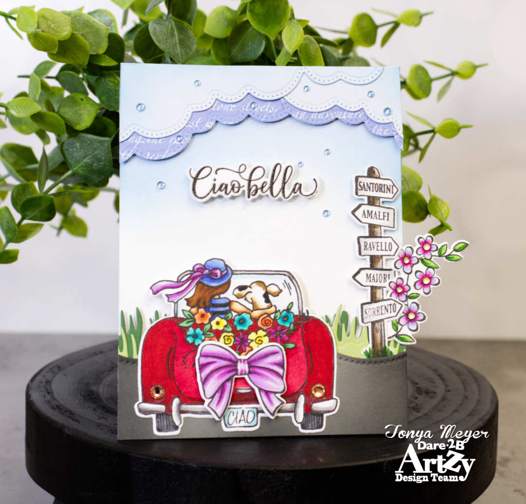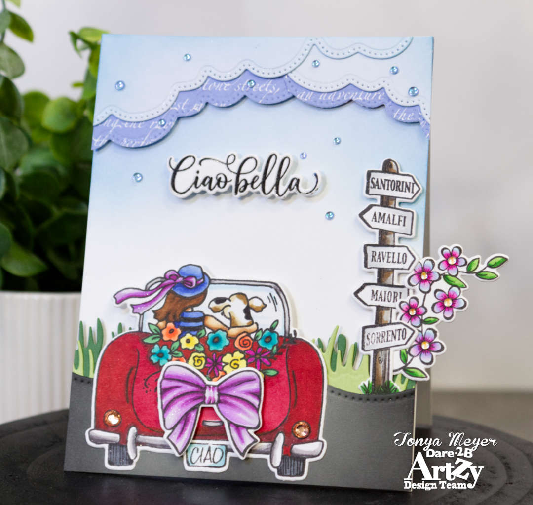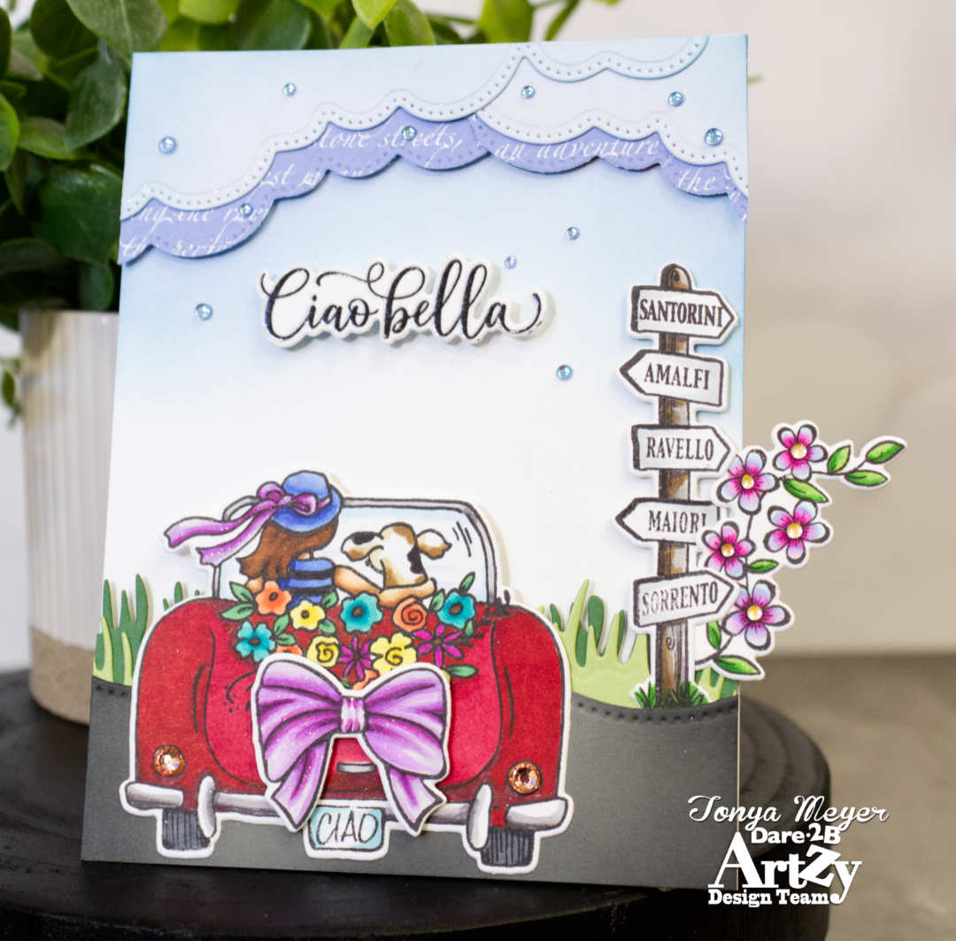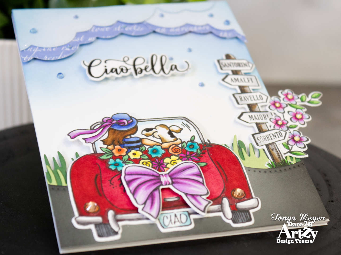 When I first saw the Ciao Bella stamp set, I was so very excited to play with the fun, convertable car with the girl driving alongside her dog in the passenger seat. It is such a cute stamp set!