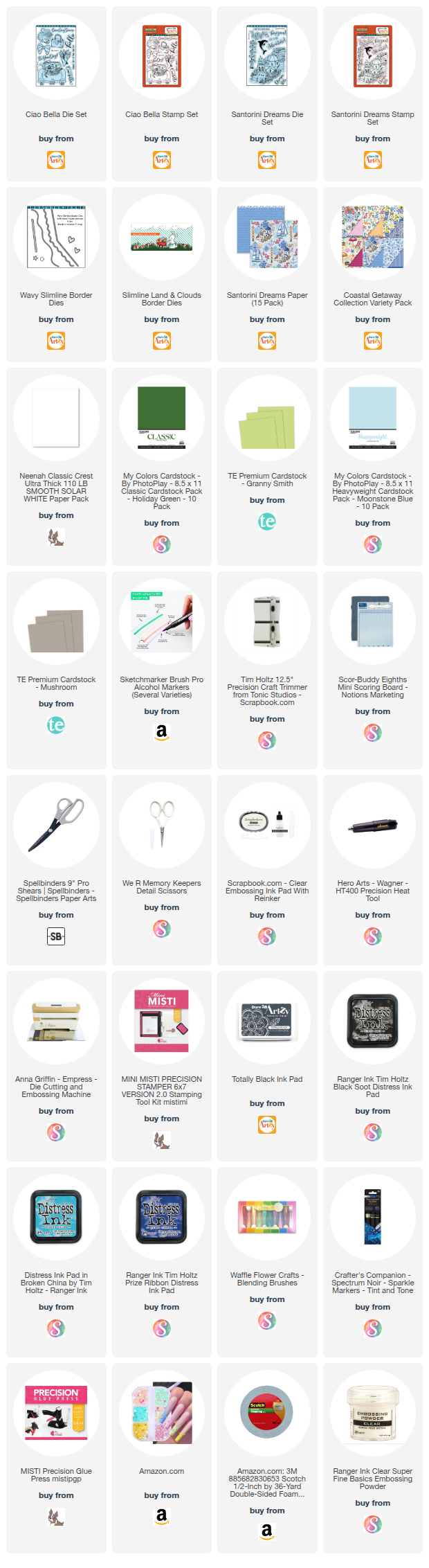 I cannot say enough good things about this release and the stamp set I created todays card with is my absolute favorite in in this release. My card features the Ciao Bella stamp and coordinating die set. I also pulled in a couple of stamps from the new Santorini Dreams stamp set and coordinating die.