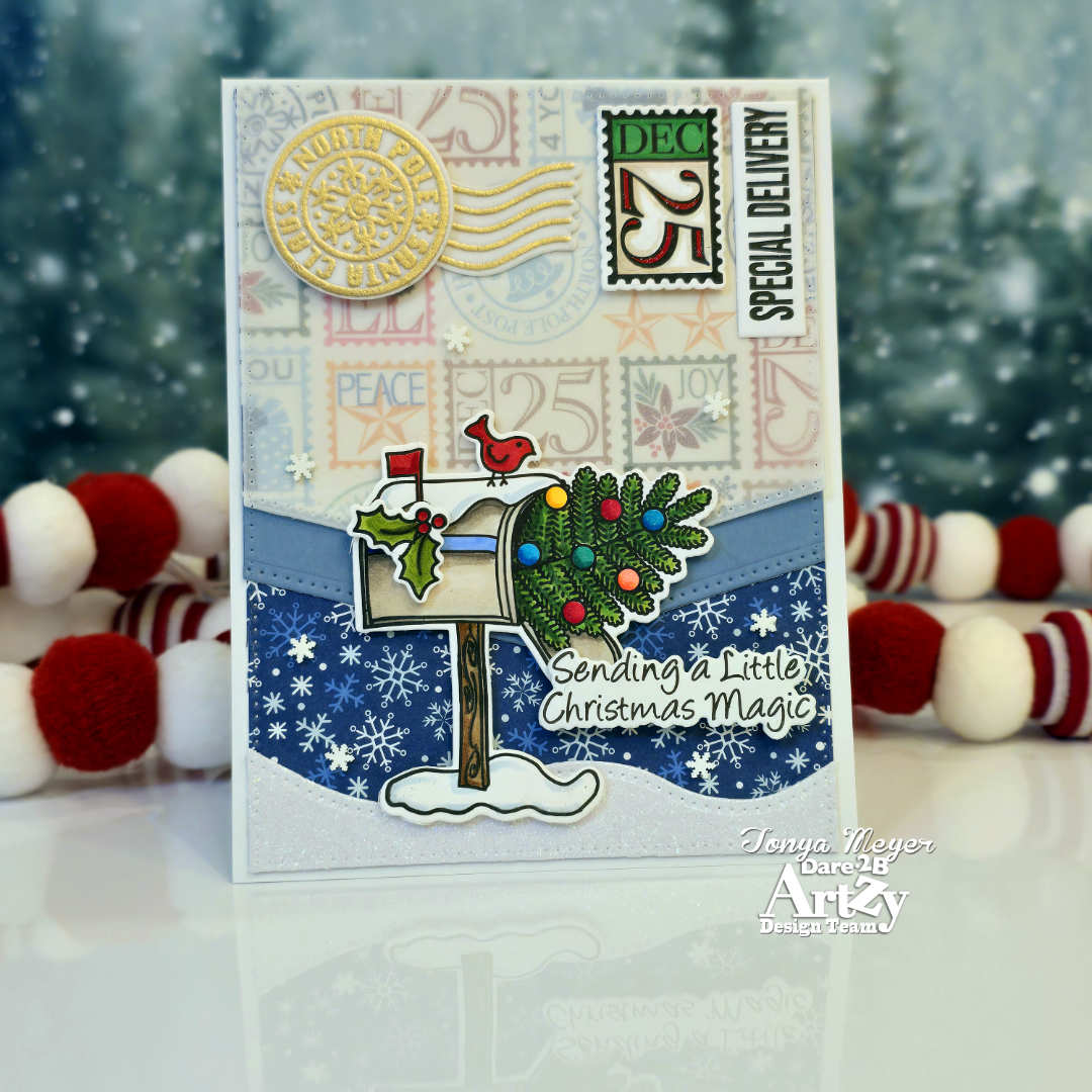 Hello Artzy friends! Today I’m thrilled to be part of a special Instagram Hop celebrating the brand-new Dare 2B Artzy Delivering Christmas Collection. This release is packed with festive stamps, dies, and papers—so many favorites, it’s hard to choose just one!