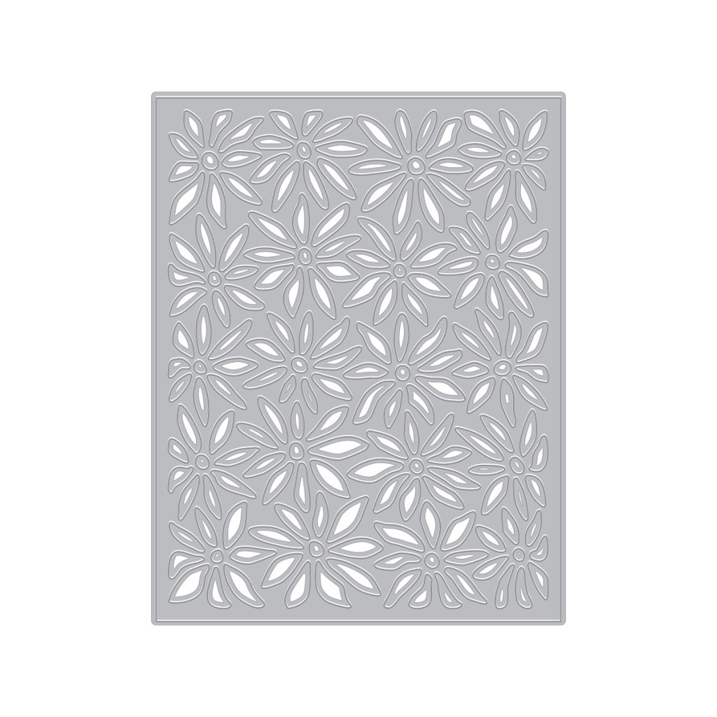 To begin, I die cut the Daisy Cover Plate from Teal Topaz cardstock by Spellbinders. This die cuts beautifully and creates such a fun, artistic floral background with incredible detail.