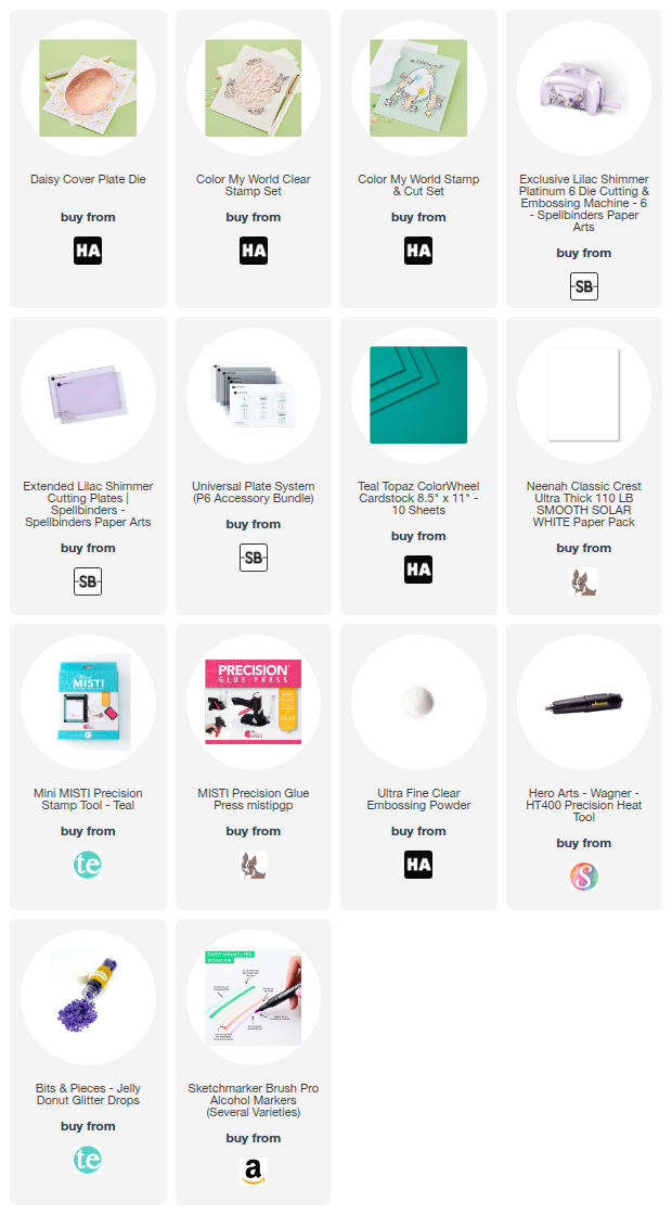 Today I’m sharing a bright and cheerful Easter card featuring the beautiful Daisy Cover Plate Die from Hero Arts. This stunning cover die creates the perfect springtime backdrop, and I paired it with a few sweet images from the Color My World Stamp & Cut Set.