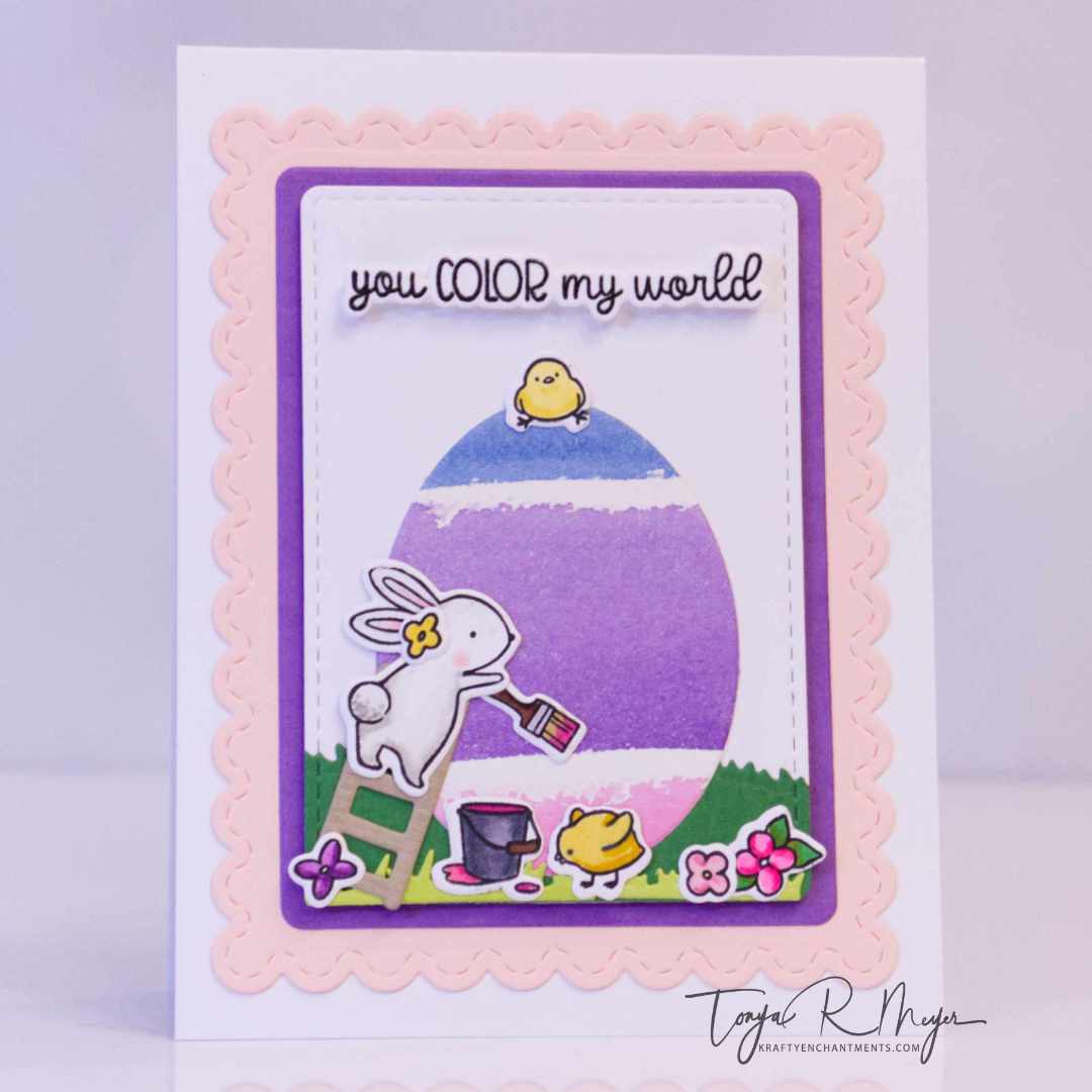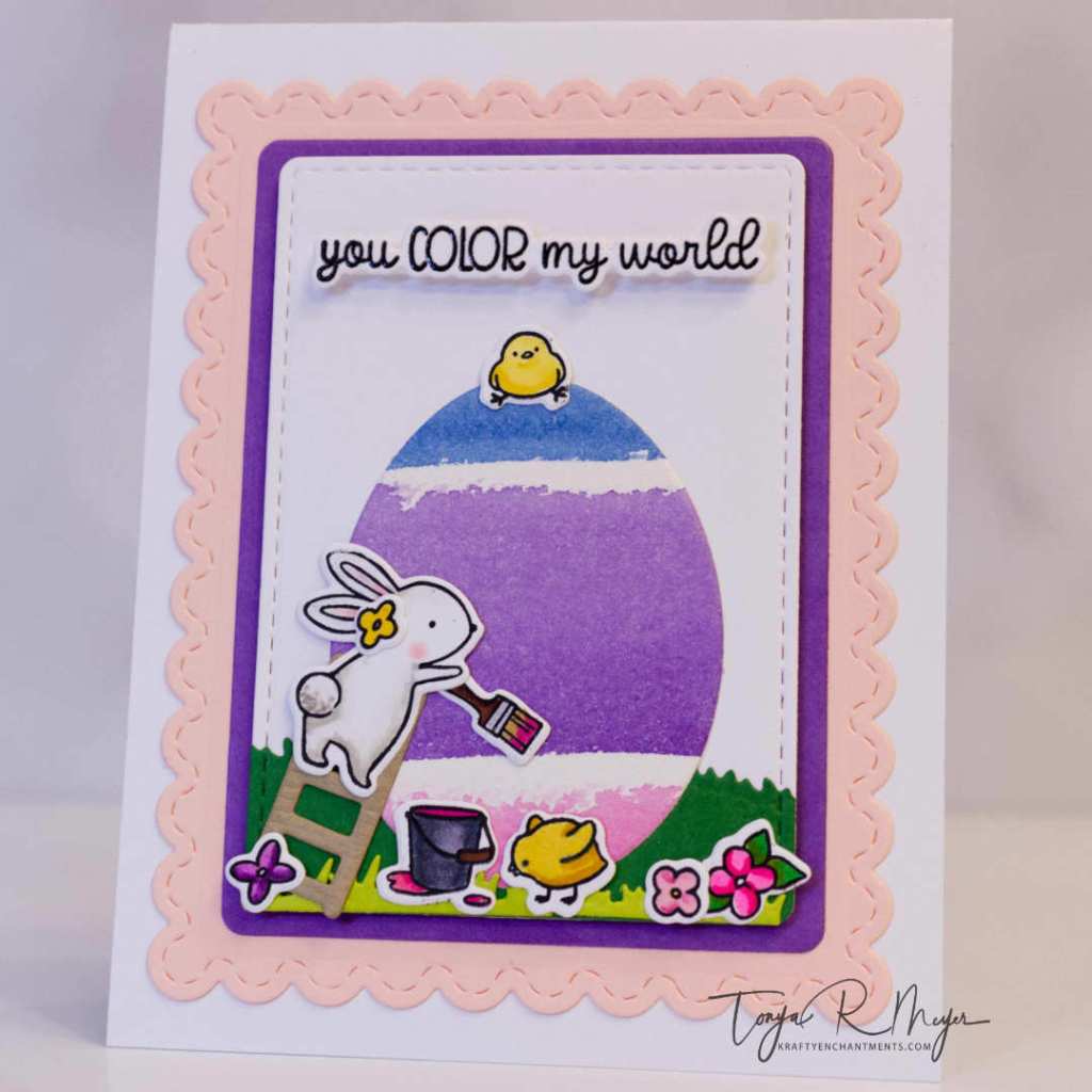 I love how quickly this card came together, and the fact that I was able to create three Easter cards using the Color My World Stamp & Cut set. It’s perfect for spring scenes and adorable bunny-themed cards all year long.