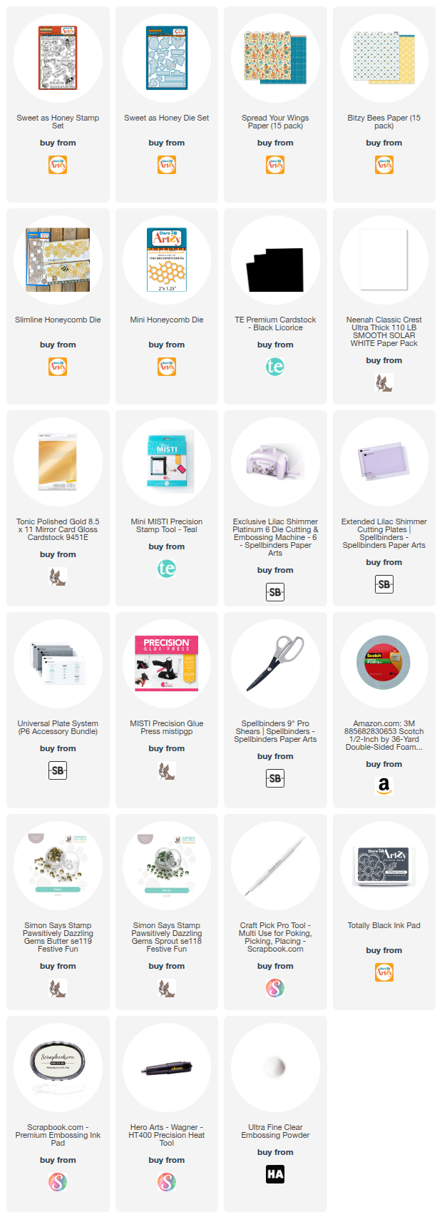 I started with the Sweet as Honey stamp set and coordinating die, paired with the new Hexagon Nestables die set. I also pulled in some gorgeous papers from the latest release: Spread Your Wings and Bitzy Bees. And yes, I even dug out the Slimline Honeycomb Die—though I think it might be retired, so don’t worry if you can’t find it. I’ve included the link to an alternative die for anyone who wants it.